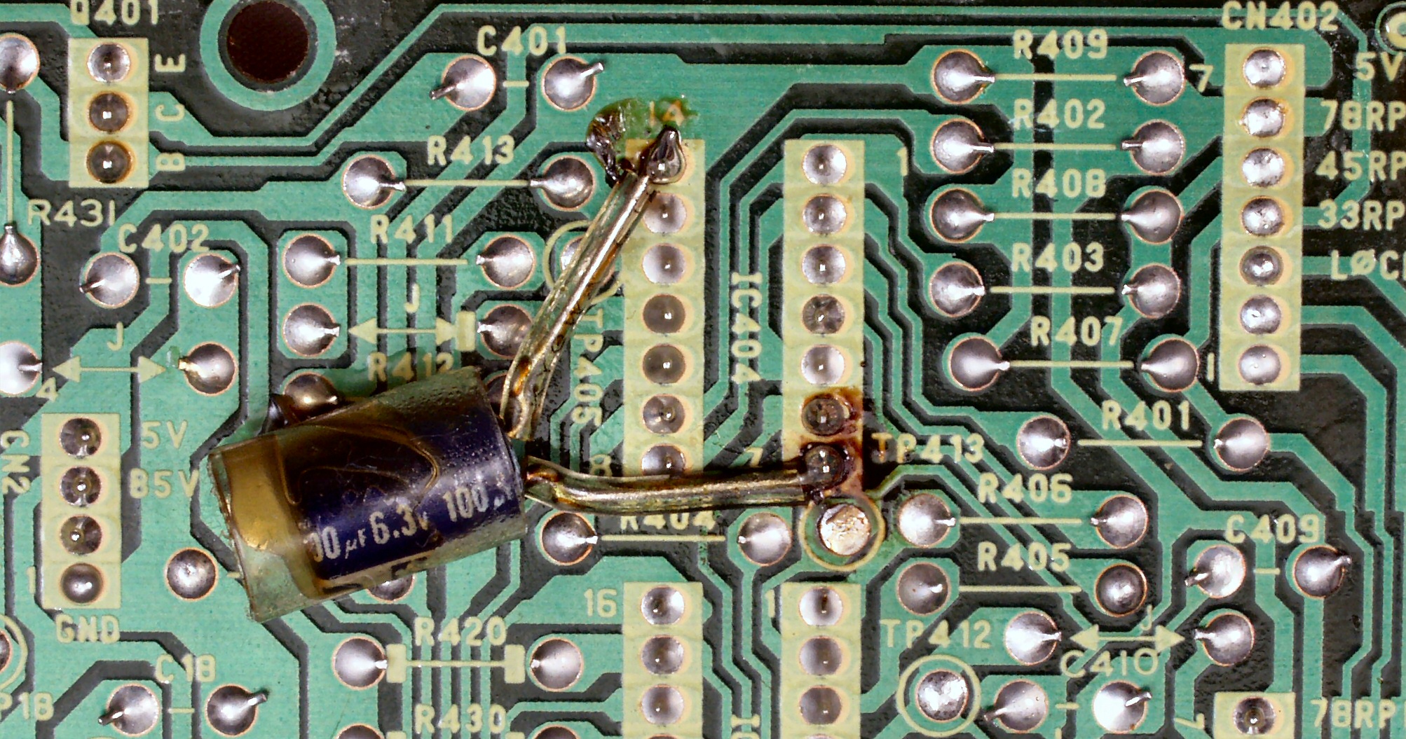 | C−9B. 修理(半田補正)後 ターンテーブル操作基板裏 | ||||||||||||||||||||||||||||||||||||||