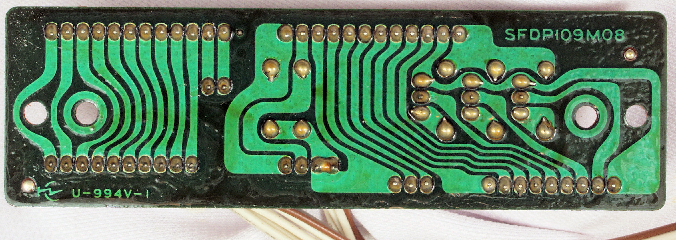 | D35. 完成ターンテーブル操作基板基板裏。 余分なフラックスを落として、コート液を塗る。 | ||||||||||||||||||||||||||||||||||||||
