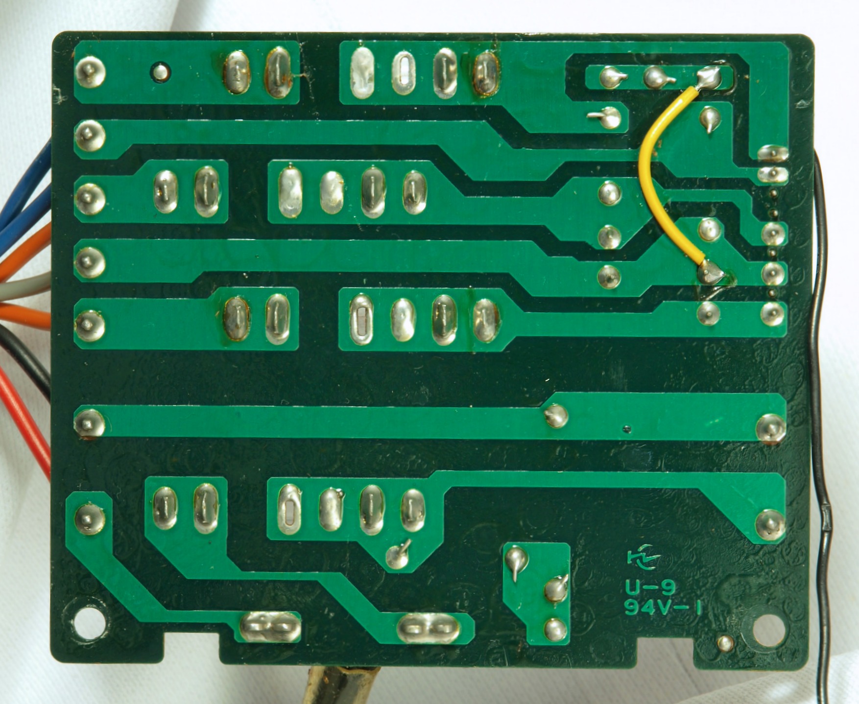 | D35. 完成ターンテーブル操作基板基板裏。 余分なフラックスを落として、コート液を塗る。 | ||||||||||||||||||||||||||||||||||||||||