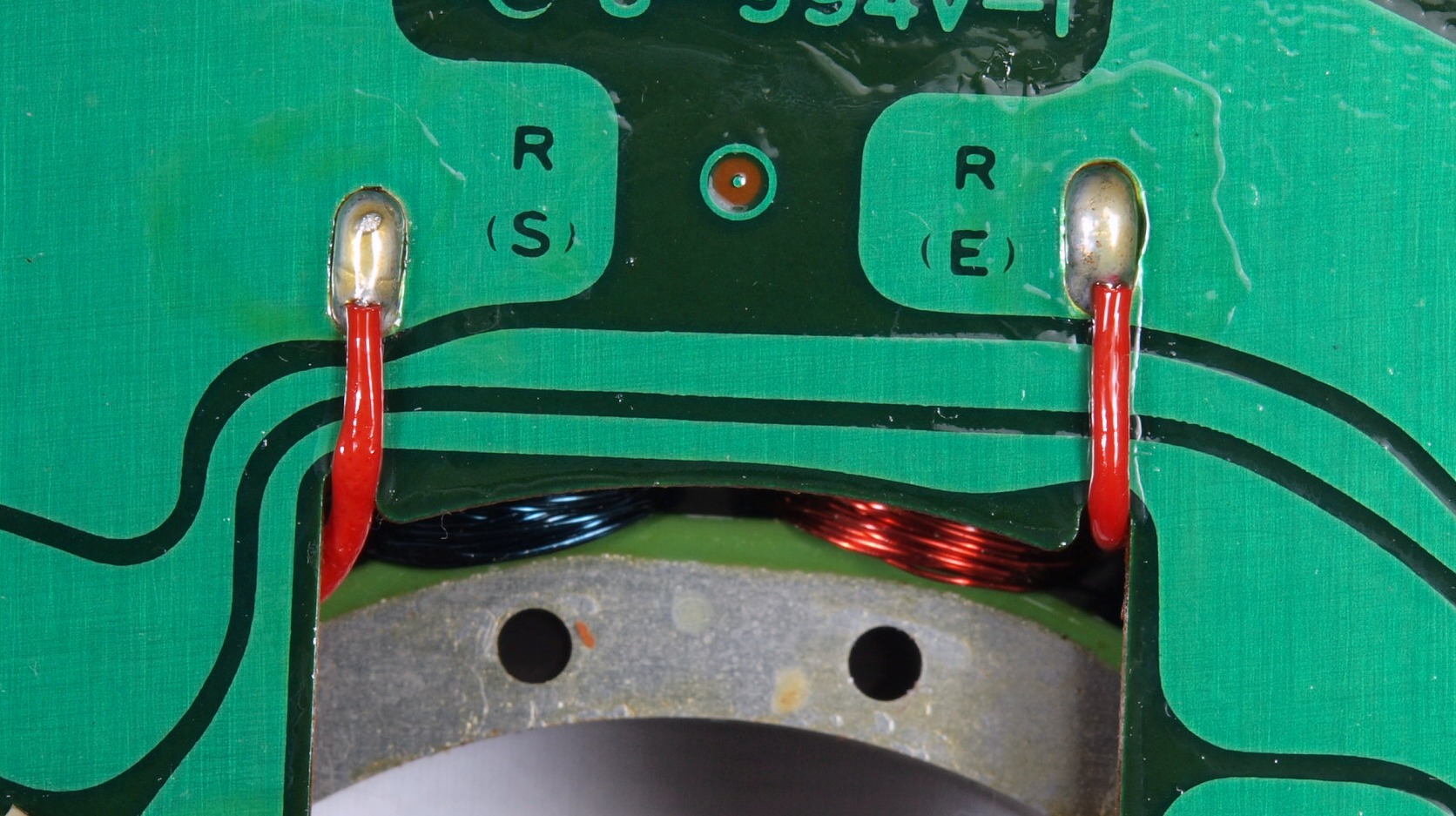| M312. 修理中、 アマチュア(回転子)基盤裏巻線半田、引き出し線が絶縁していない!(RED巻線)拡大 | ||||||||||||||||||||||||||||||||||||||||