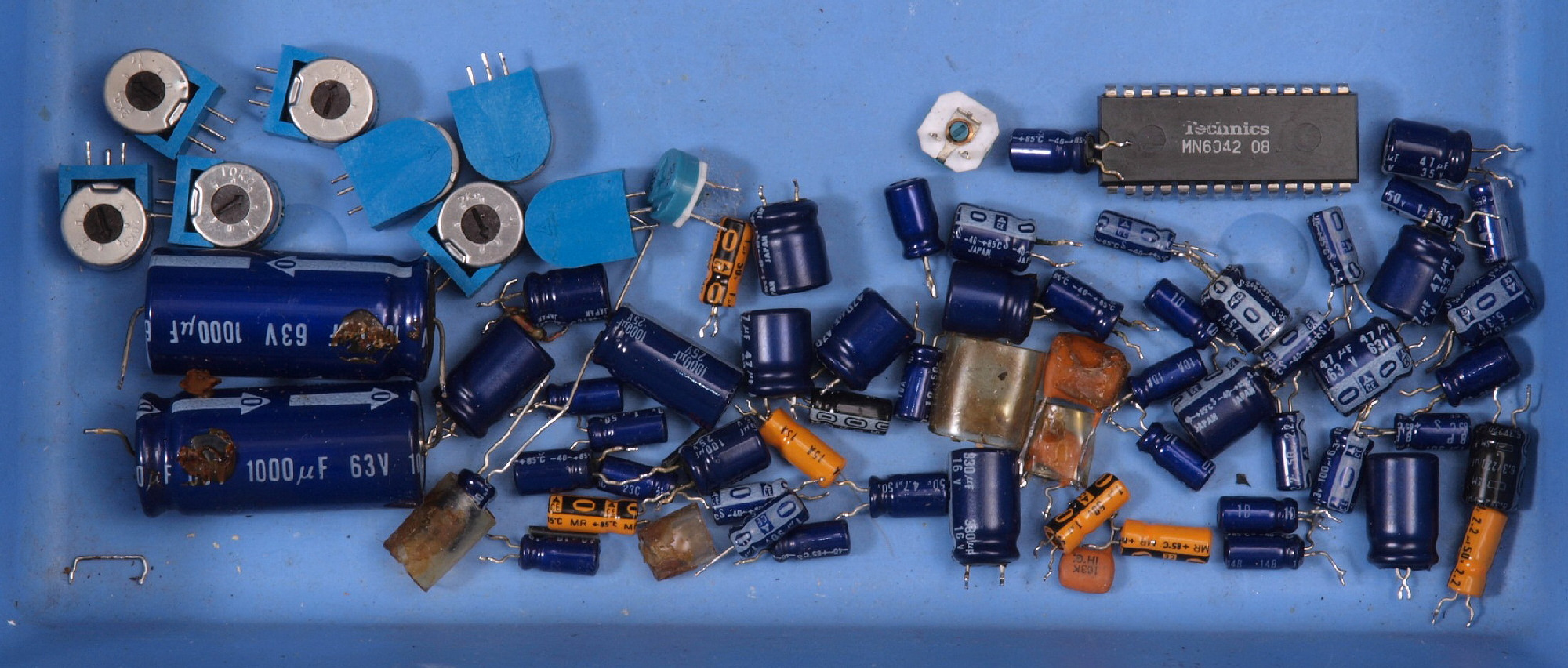 | M82. 全体の交換部品、 液漏れした電解コンデンサー。 | ||||||||||||||||||||||||||||||||||||||||