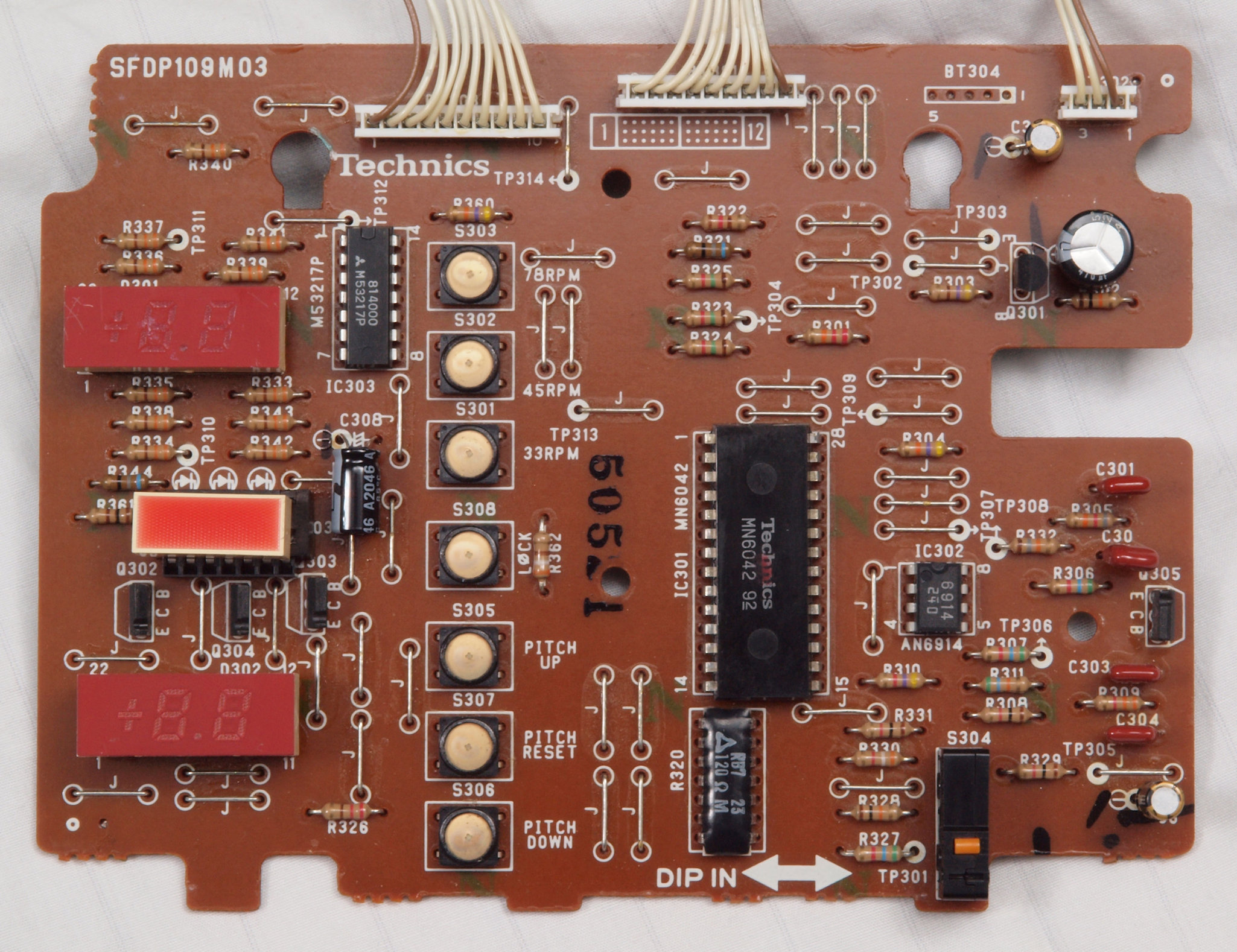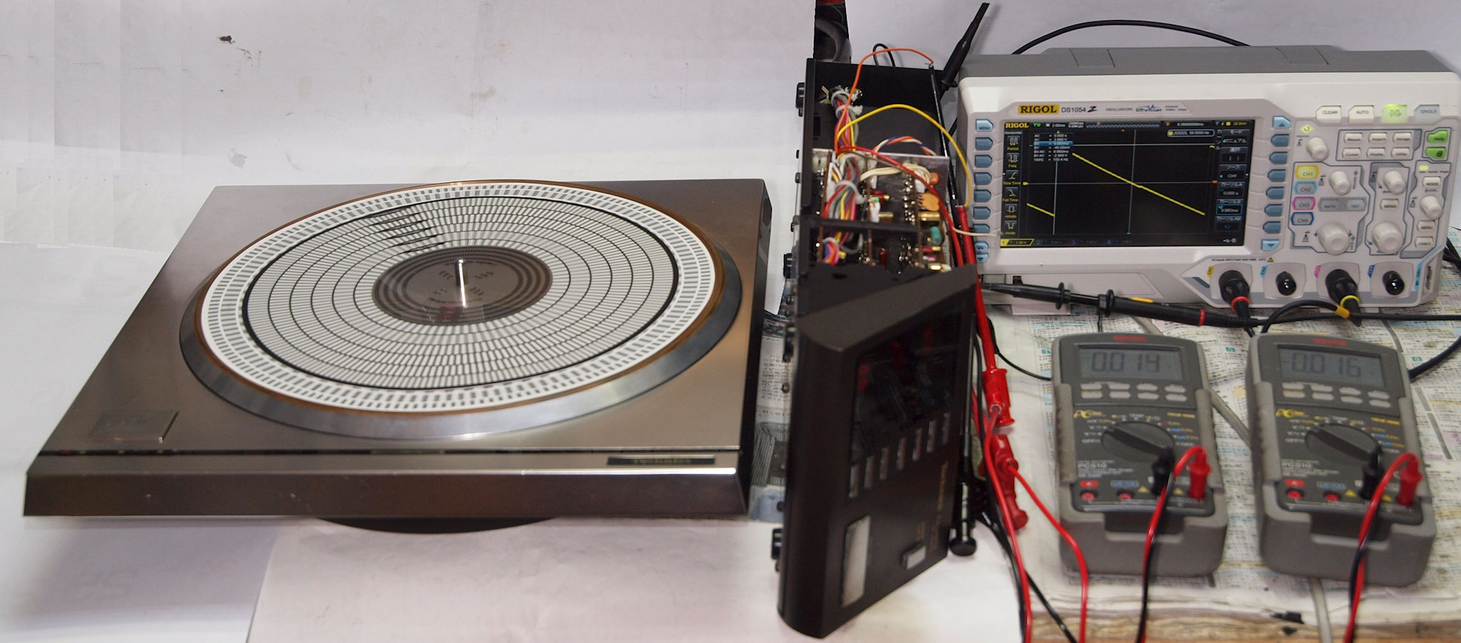 | CC5. 修理前 電源部点検中 回転表示LED、33回転。 欠けている。 | ||||||||||||||||||||||||||||||||||||||||