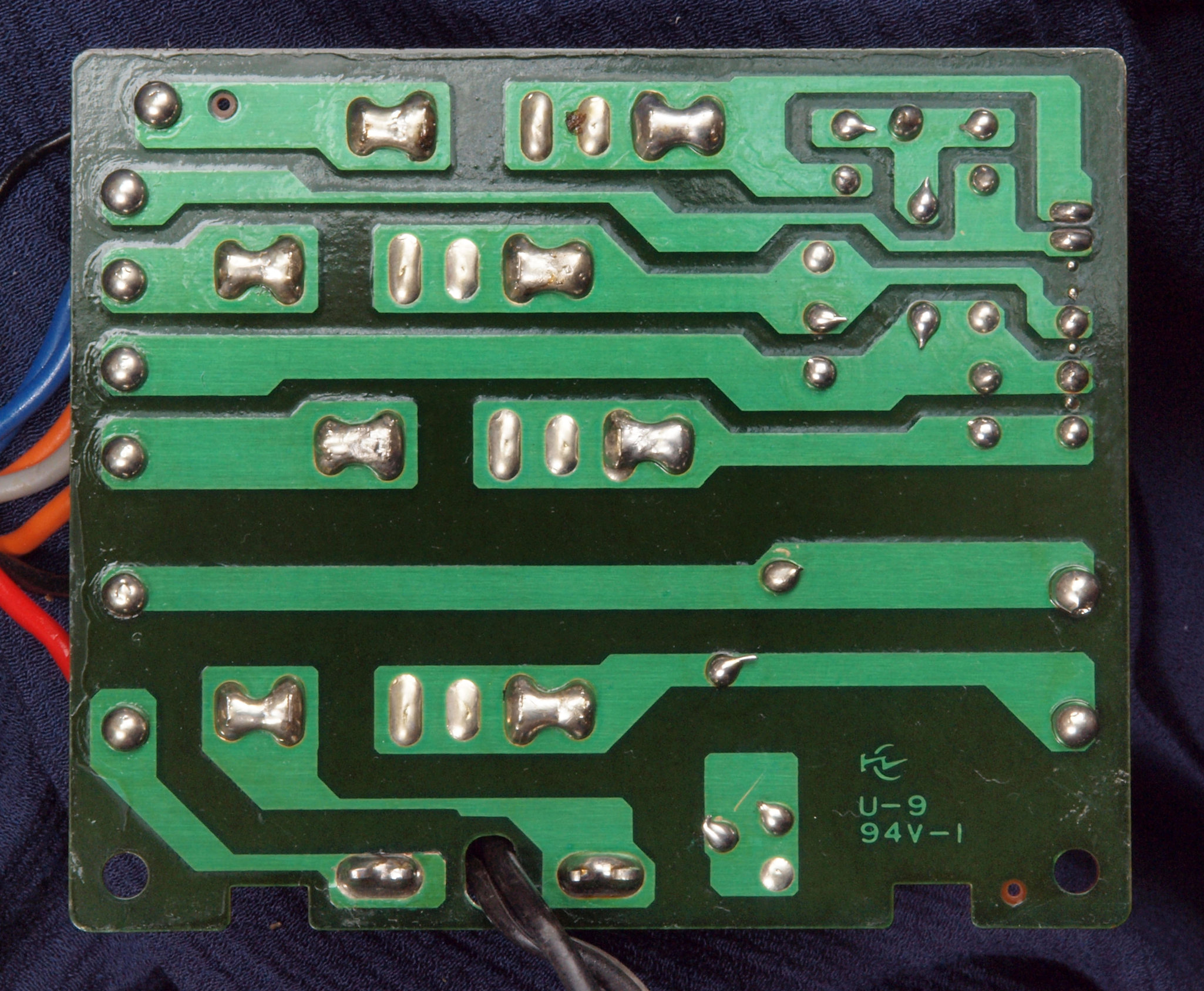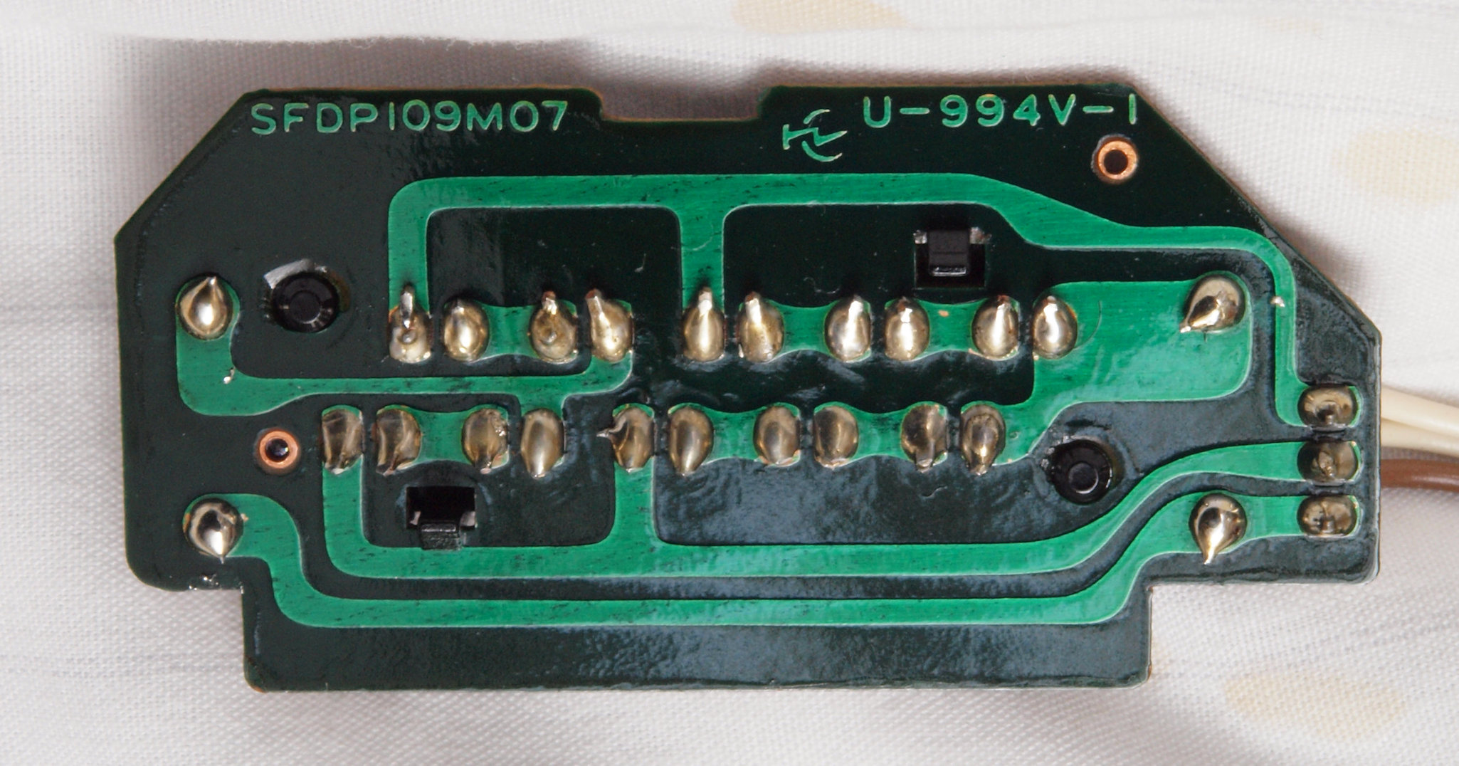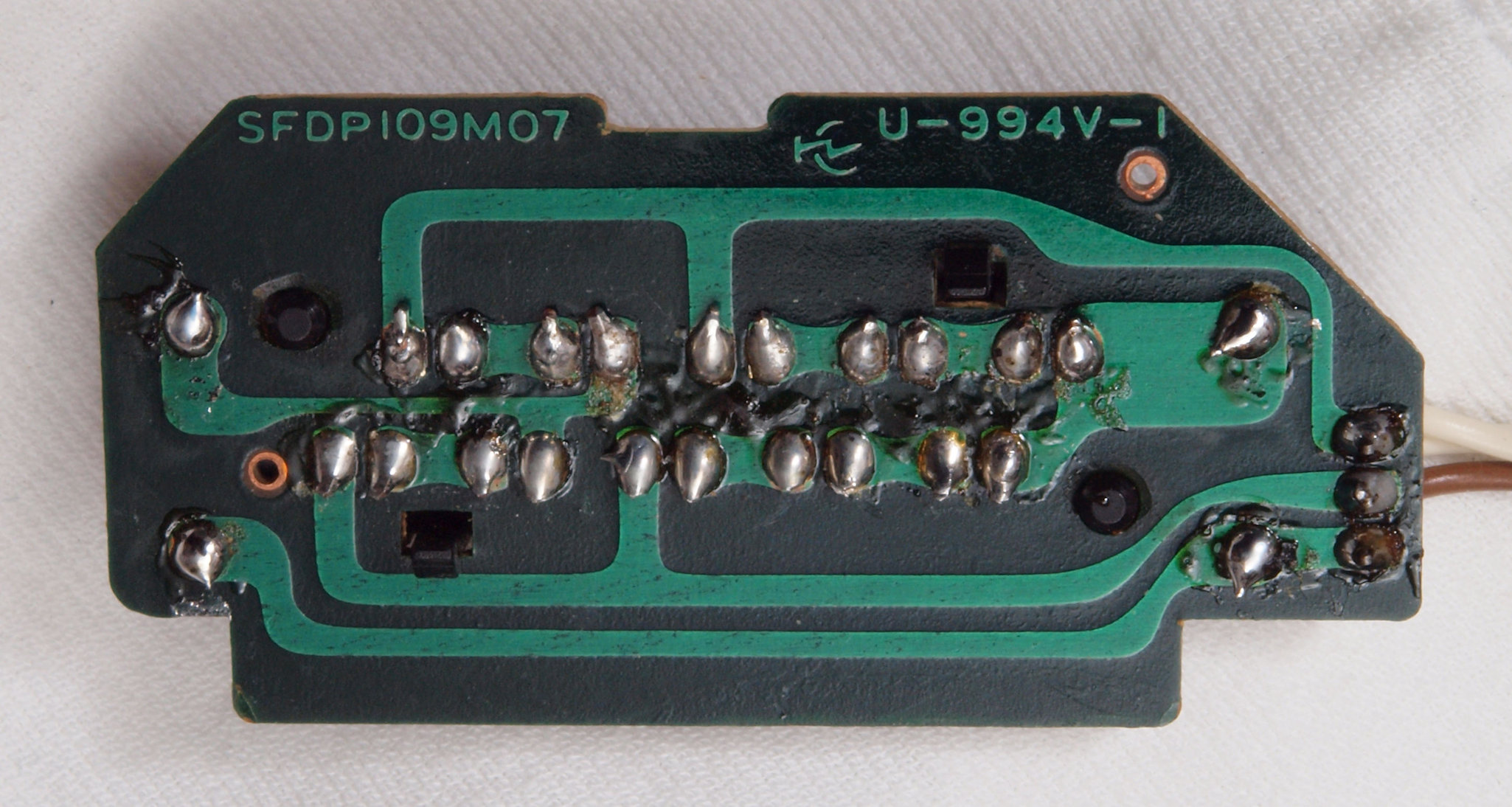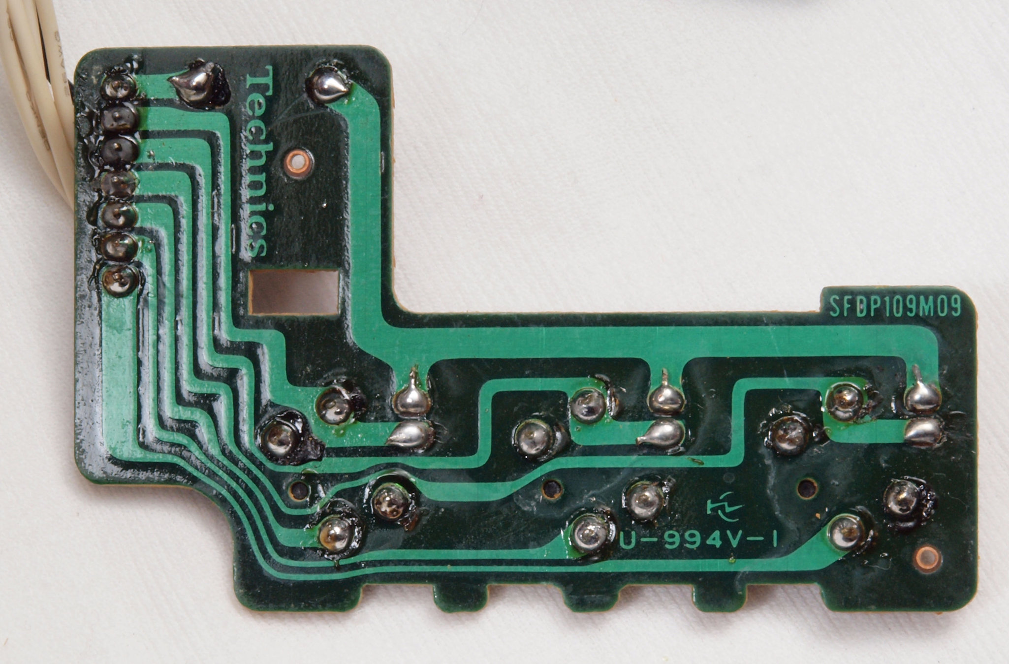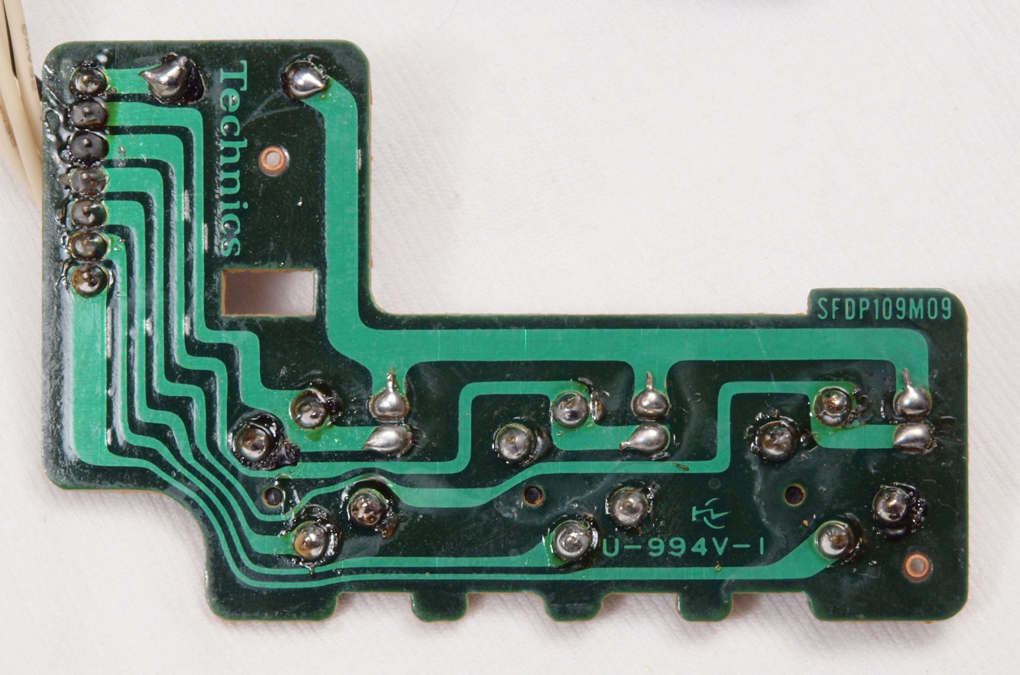 | D35. 完成ターンテーブル操作基板基板裏。 余分なフラックスを落として、コート液を塗る。 | ||||||||||||||||||||||||||||||||||||||||