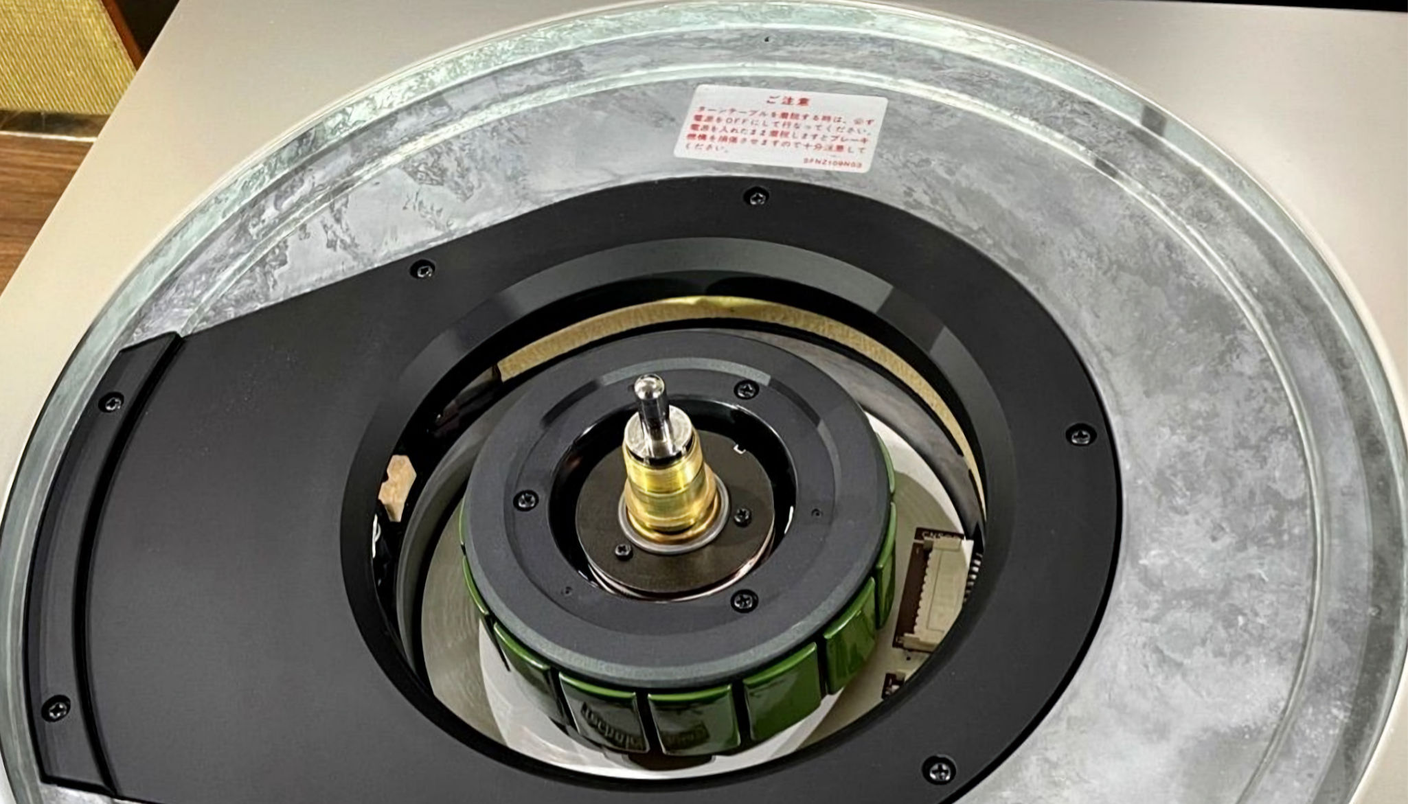 | D. 本体(タンテーブル)修理状況。 画像をクリックすると、大きく(横幅2050ドット)表示されます。 D01. 修理前 上から見る。 |