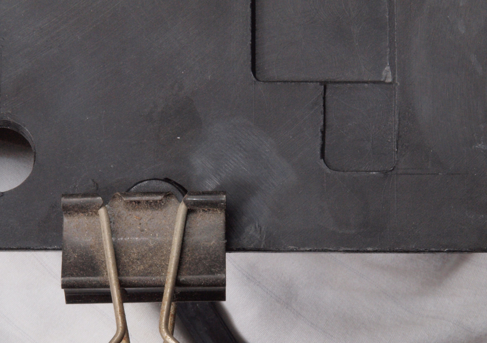| M83. 修理後 割れて取れた、下カバー取り付け穴。さらに2液性接着材で固定する。 | ||||||||||||||||||||||||||||||||||||||||