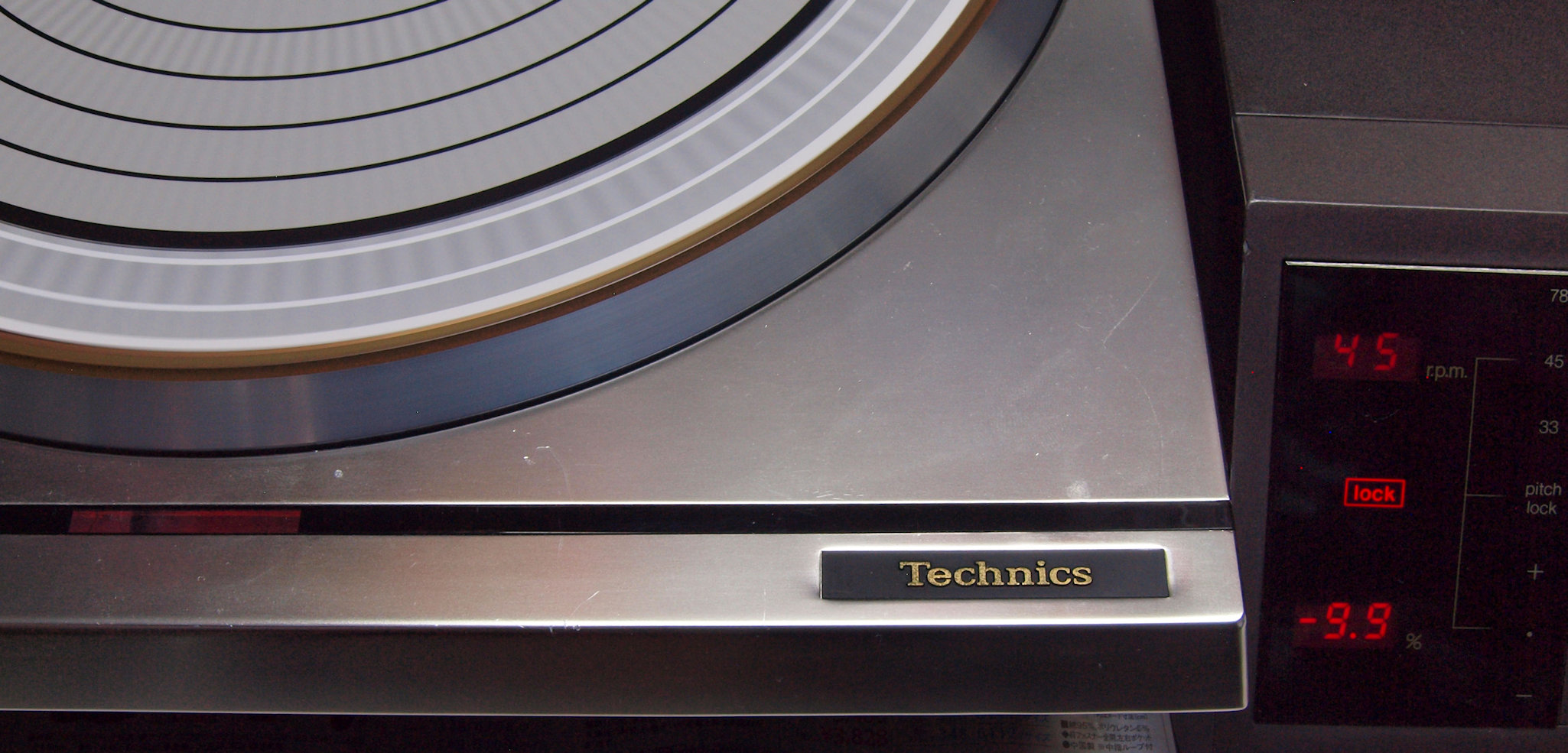 | E42. 測定 45回転。 微調整−9.9%回転+LOCK。ストロボに黒い所が見えるのはシャッターとストロボ周波数の干渉の為。 | ||||||||||||||||||||||||||||||||||||||||