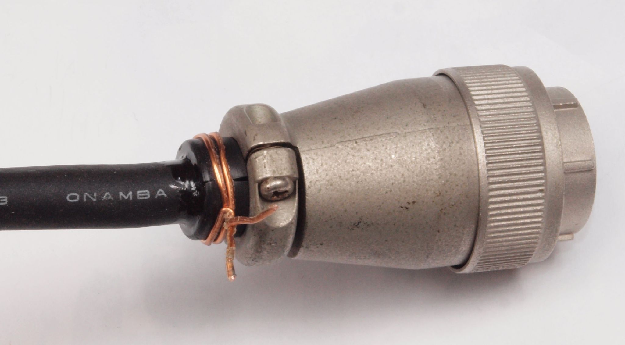 | D64. 修理後 電源への接続プラグ。さらに緩んだゴムブシュを締め付け、コード被覆に接着する、乾燥後締め付けエナメル線を取る。 | ||||||||||||||||||||||||||||||||||||||||
