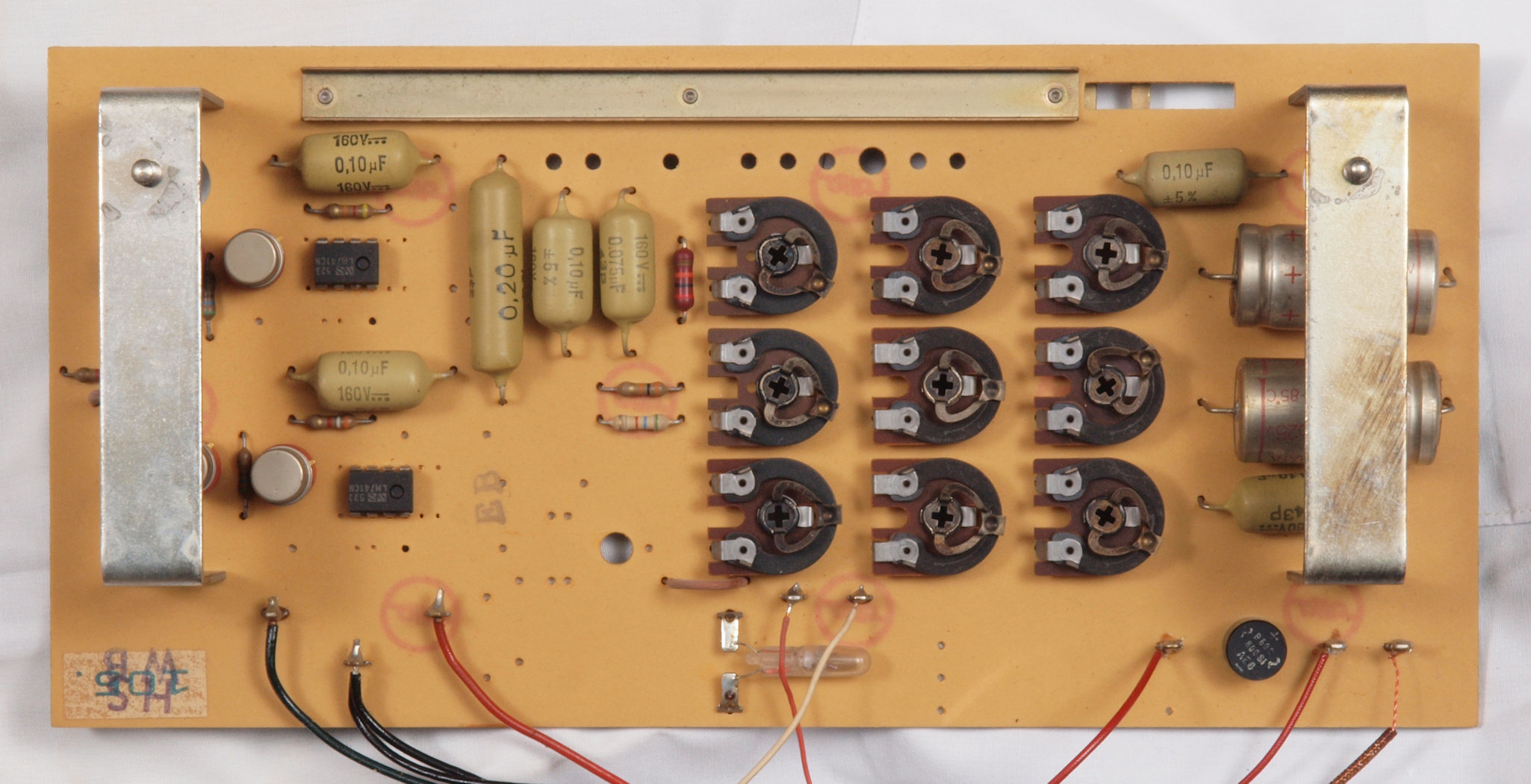 | C22. 修理後 制御基板。 OP−AMP2個、電解コンデンサー2個、半固定VR9個、フイルムコンデンサー8個交換。 | ||||||||||||||||||||||||||||||||||||||||||||||||||