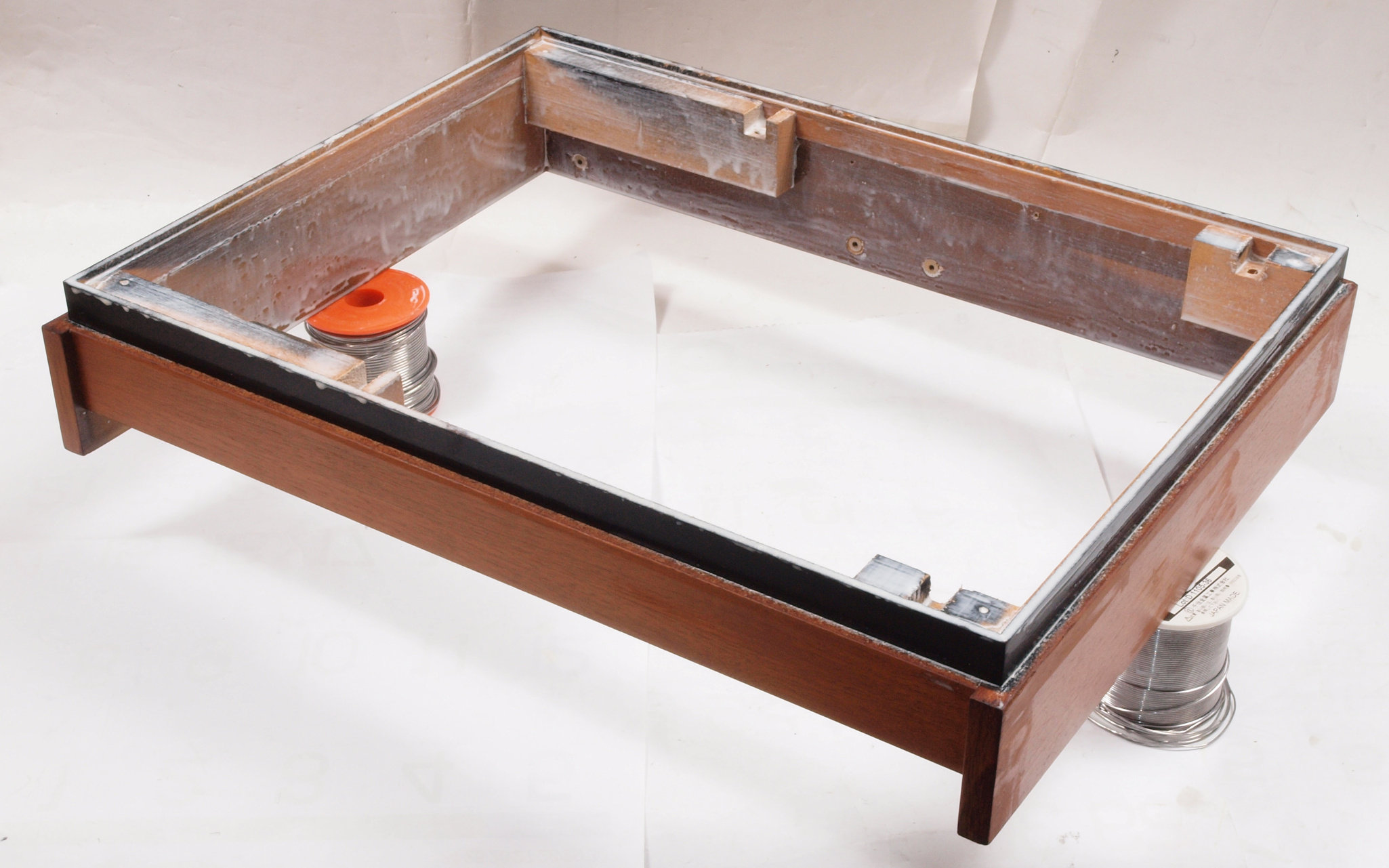 | D. 本体(タンテーブル)修理状況。 画像をクリックすると、大きく(横幅2050ドット)表示されます。 D11. 修理前 前右木台。 |
