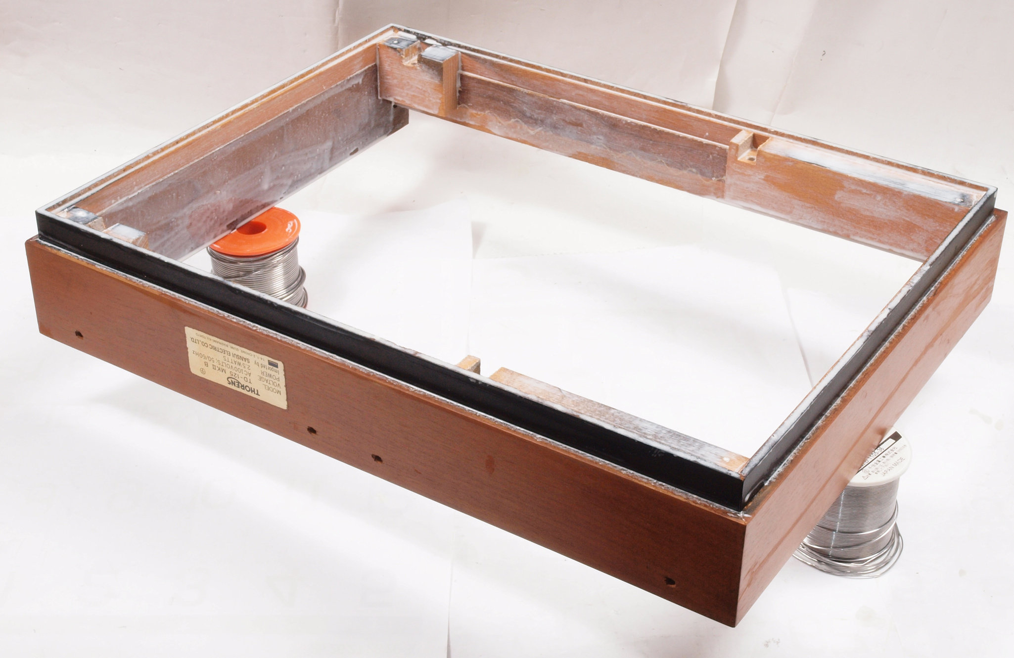| D31. 修理前 ターンテーブル底板表側。パルプ(紙)を圧縮成形した物で湿度に弱い。 | ||||||||||||||||||||||||||||||||||||||||||||||||||