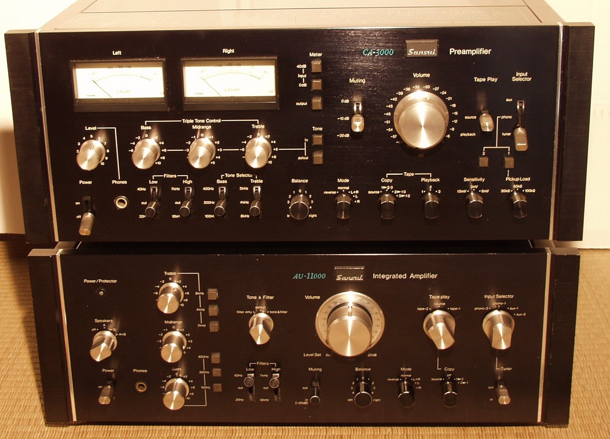 | B2.メインAMPとプリAMPを重ねる場合、普通は重量の安定を考え、下の様にしますが、放熱からは、逆が良い。 これではメインAMPの熱がそのままプリAMPに流入する ラック使用の場合、遮熱板を巧く利用します |