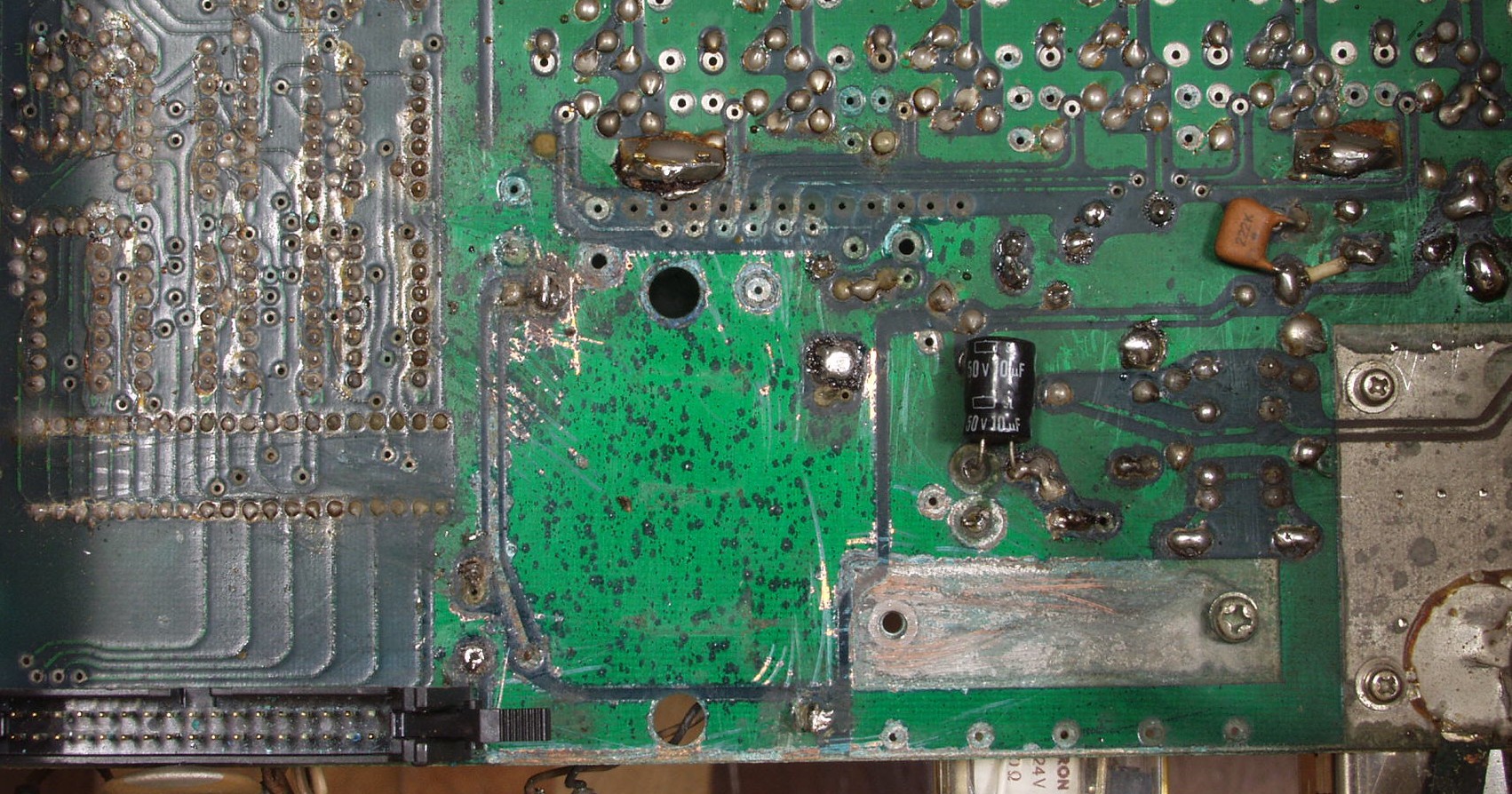 | C. 修理の様子 C−1A. 修理前 電池の液漏れで腐食した部分 |