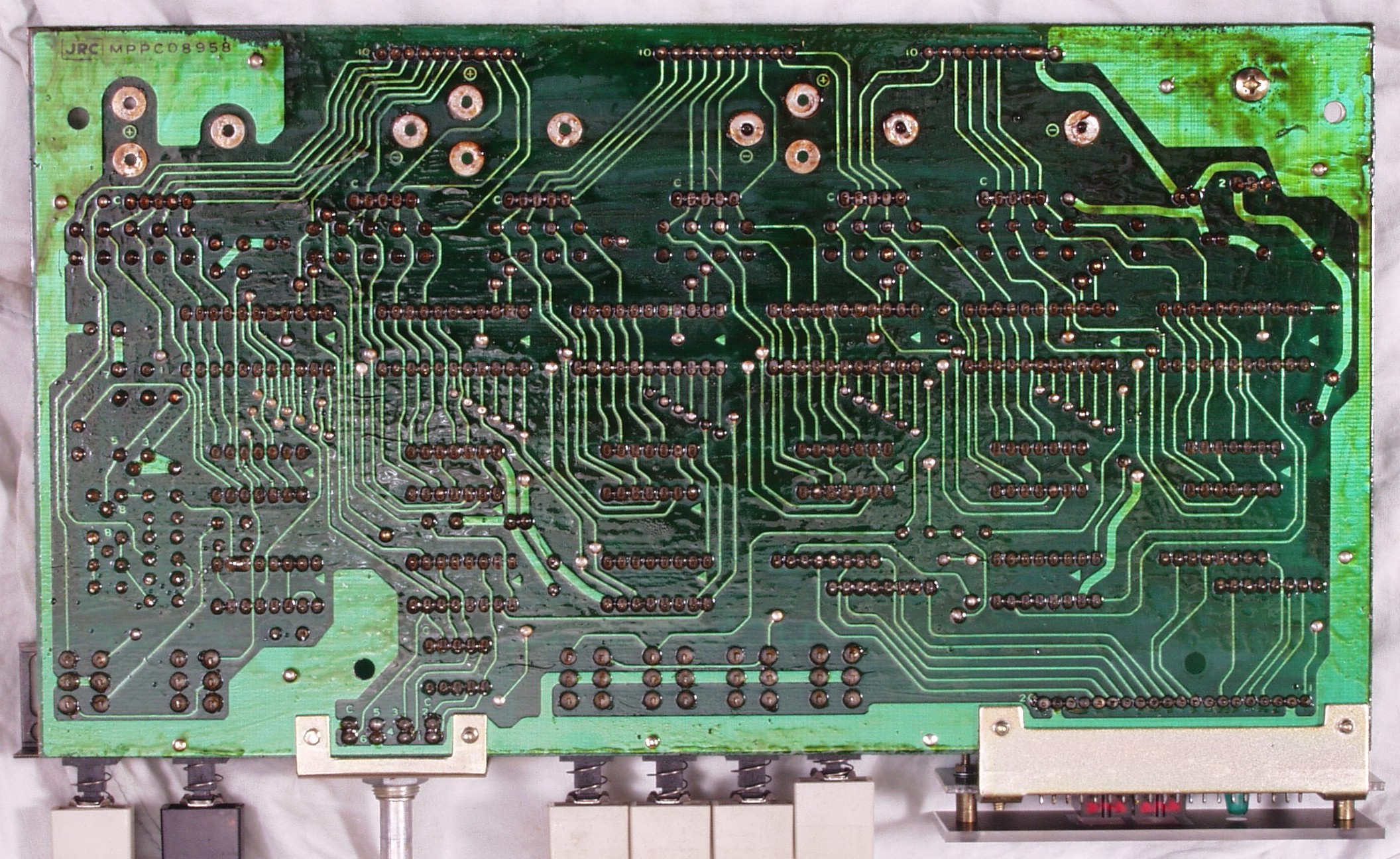 | C−6E. 修理中 シンセサイザー基板裏、シールドを外した所 |