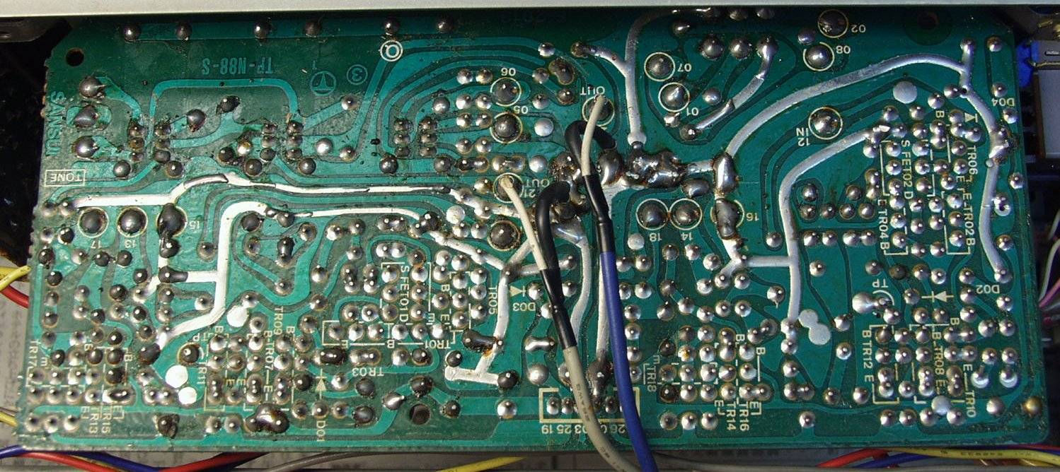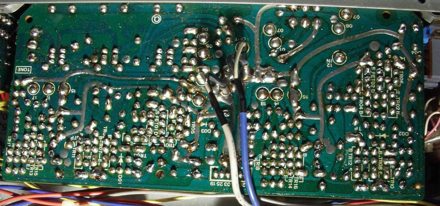 | C−2D. 修理(半田補正)後 コントロールAMP基盤裏 全ての半田をやり直す |
