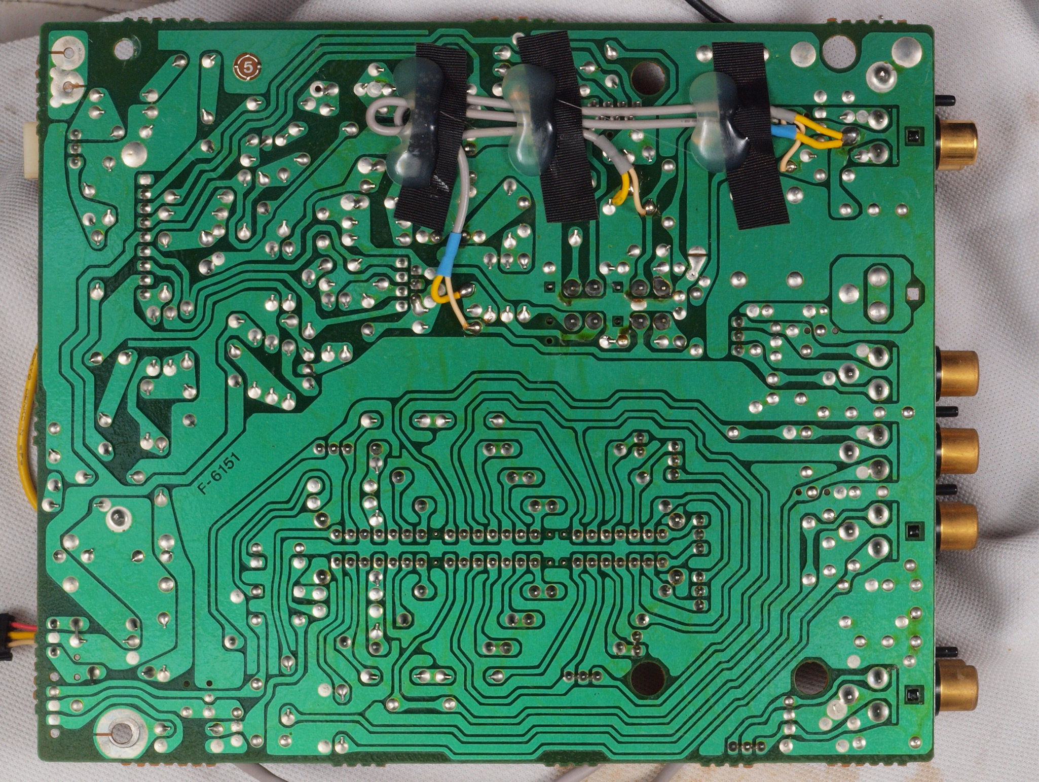 | CGB. 修理(半田補正)後 プロセッサー帰RCA端子基板裏、 全半田やり直し。 | ||||||||||||||||||||||||||||||||||||||||||||||||||||