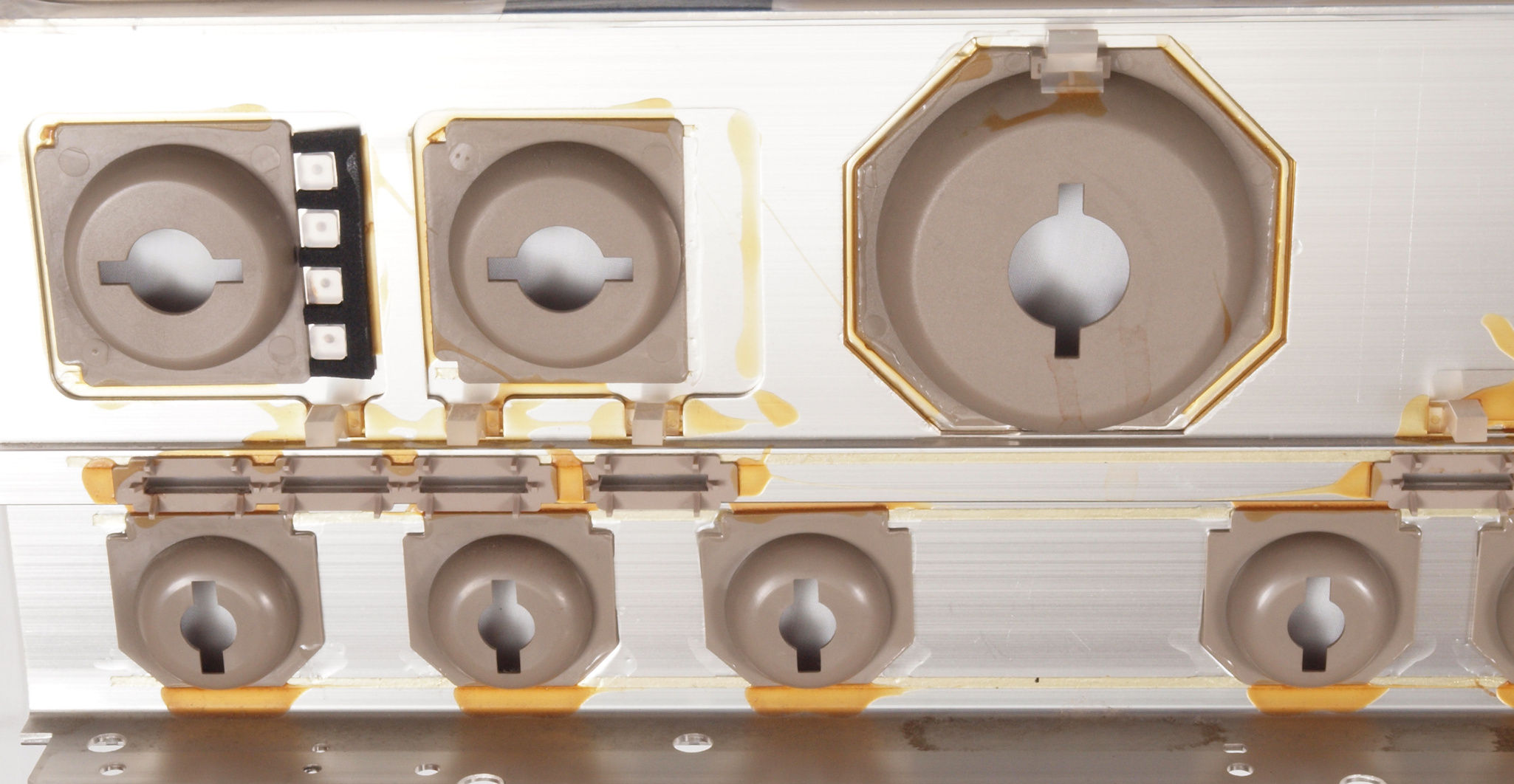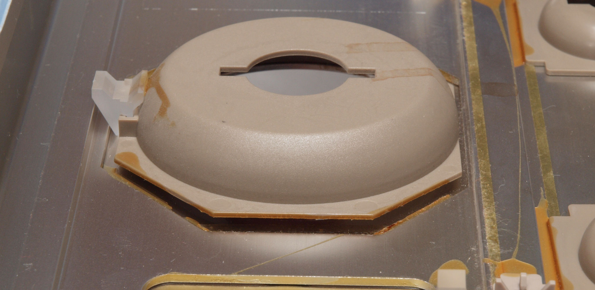 | CL5. 修理後 パネル裏ツマミ・エスカッション。 他のエスカッションも接着する。 | ||||||||||||||||||||||||||||||||||||||||||||||||||||