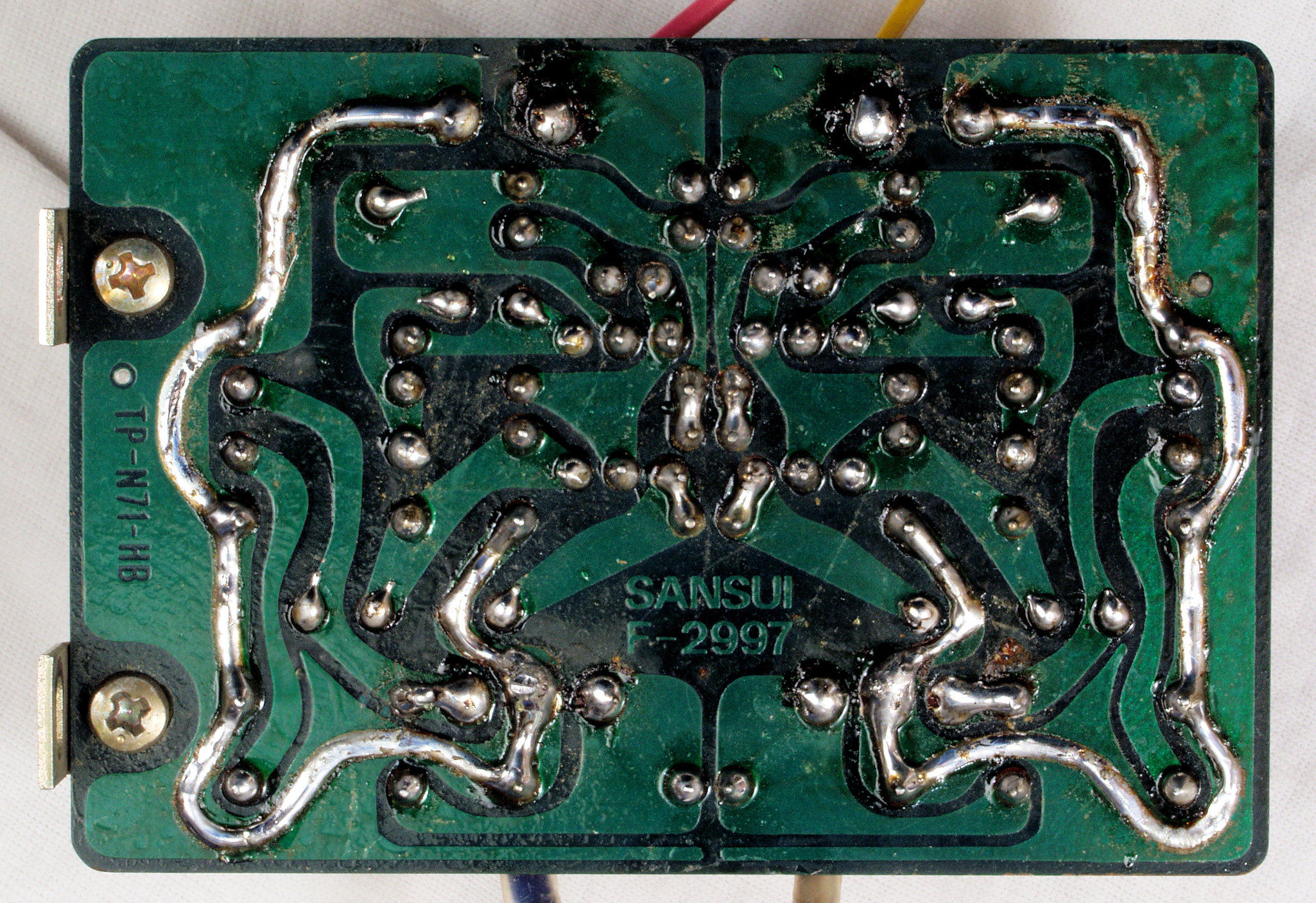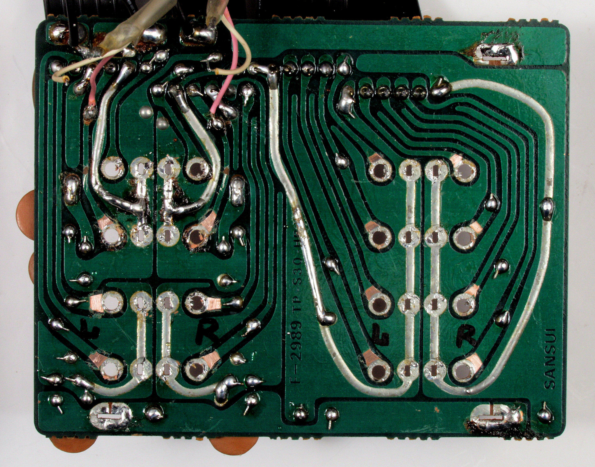 | CAC. 修理前 プリAMP出力・メインAMP入力RCA端子基板裏 | ||||||||||||||||||||||||||||||||||||||||||||||||||||||||||||||||||||||||