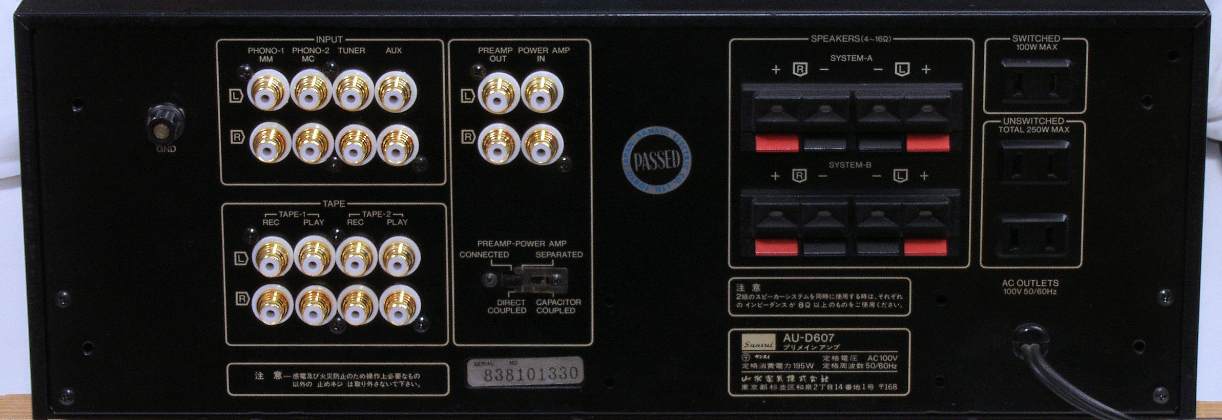 | S. Sansui AU−D607 の仕様(マニアルより) | ||||||||||||||||||||||||||||||||||||||||||||||||||||||||||||||||||||||||