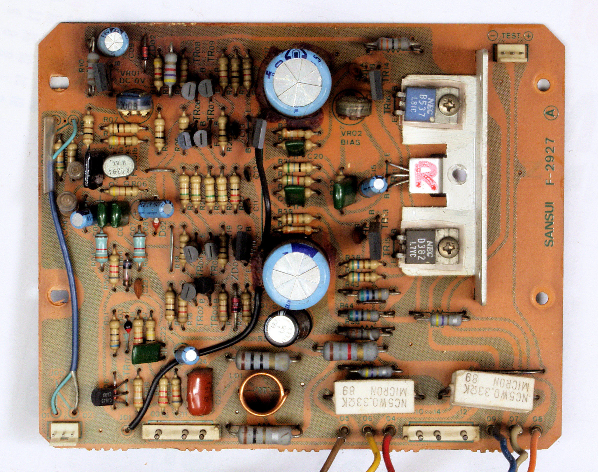 | C2B. 修理後 L側ドライブ基板 初段FET(電界効果トランジスター)、半固定VR2個、電解コンデンサー8個交換 | ||||||||||||||||||||||||||||||||||||||||||||||||||||||||||||||||||||||||
