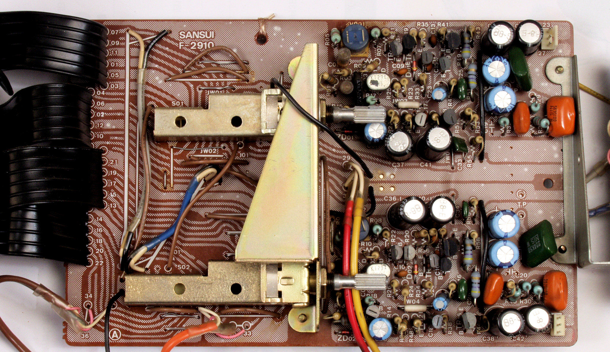 | C7B. 修理後 EQ−AMP基板 初段FET(電界効果トランジスター)2個、半固定VR2個、電解コンデンサー16個交換 | ||||||||||||||||||||||||||||||||||||||||||||||||||||||||||||||||||||||||