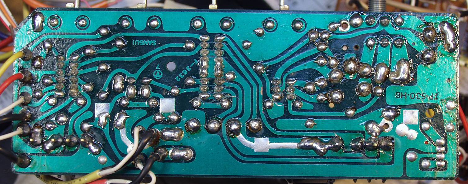 | C−2E. 修理前 コントロールAMP基盤 接続端子の半田のり=少ない! |