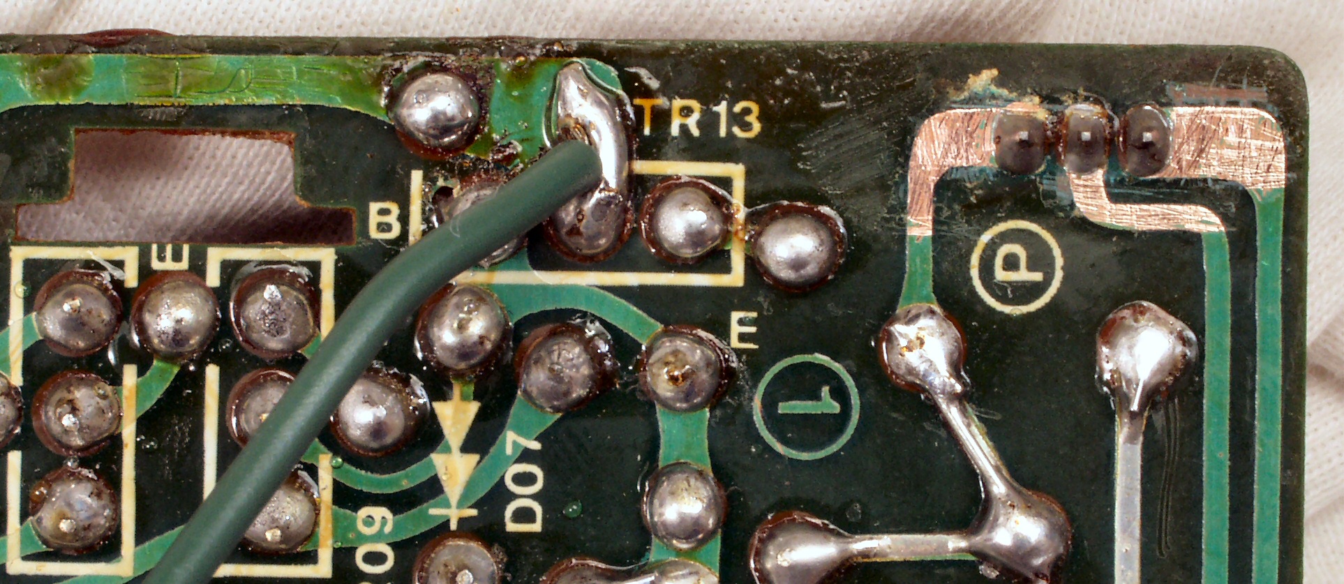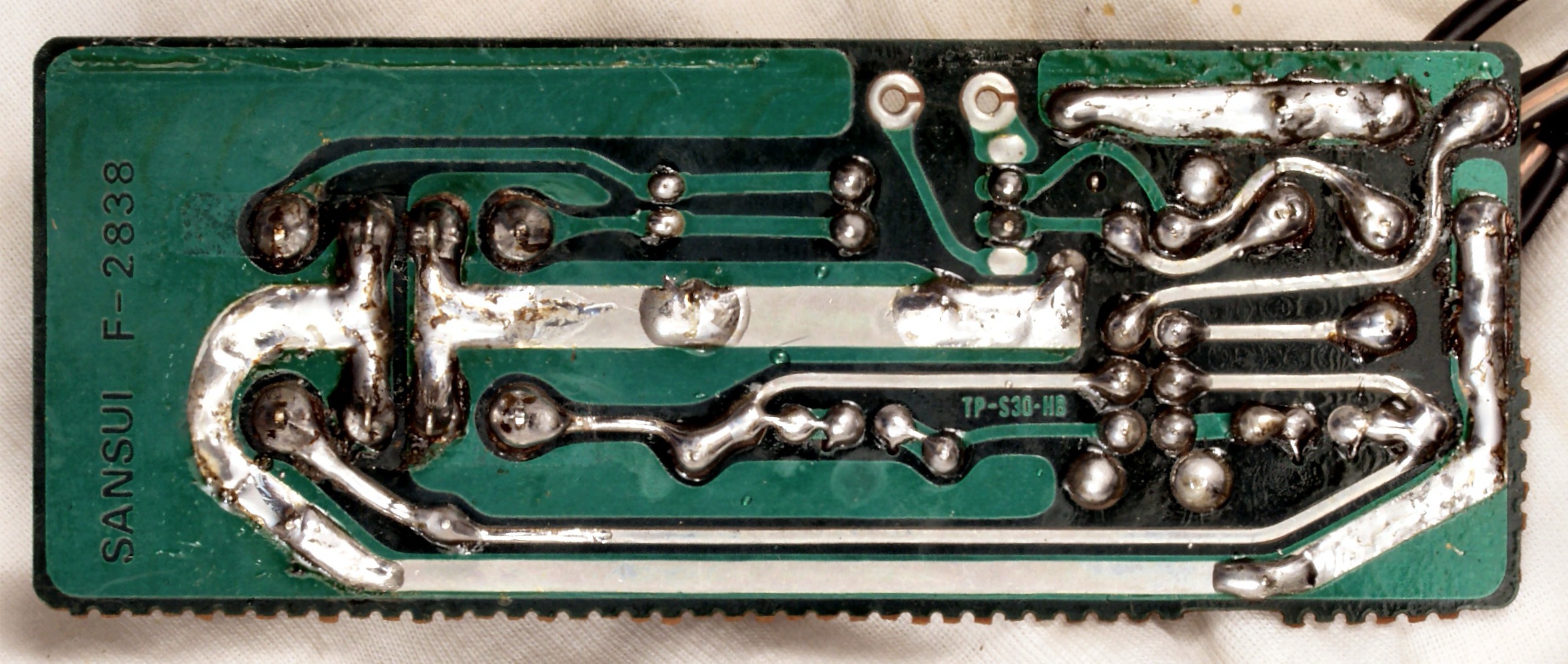 C6B. 修理(半田補正)後 TapePlaySW基板裏  全ての半田をやり直す