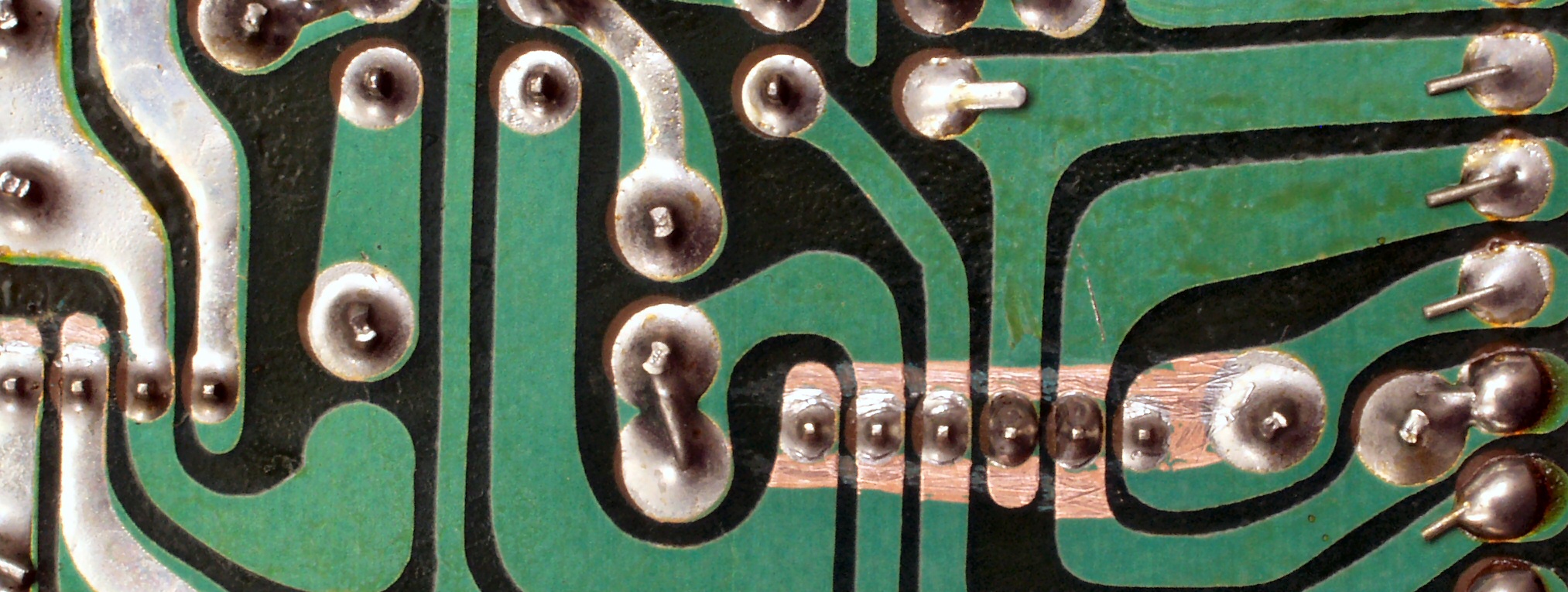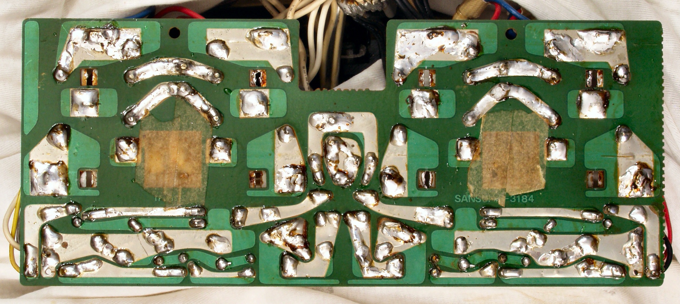C3E. 修理(半田補正)後 FLAT−AMP基板裏  全ての半田をやり直す