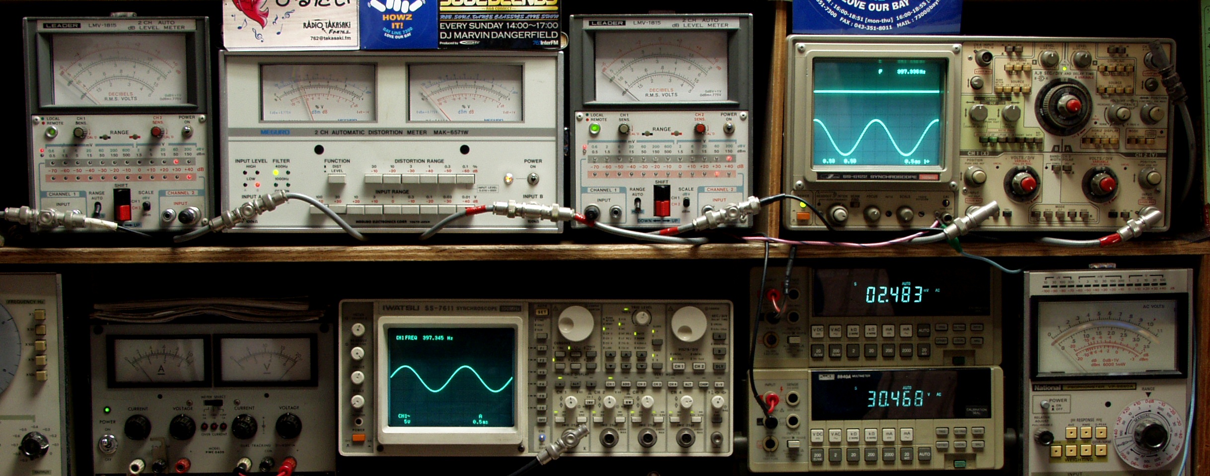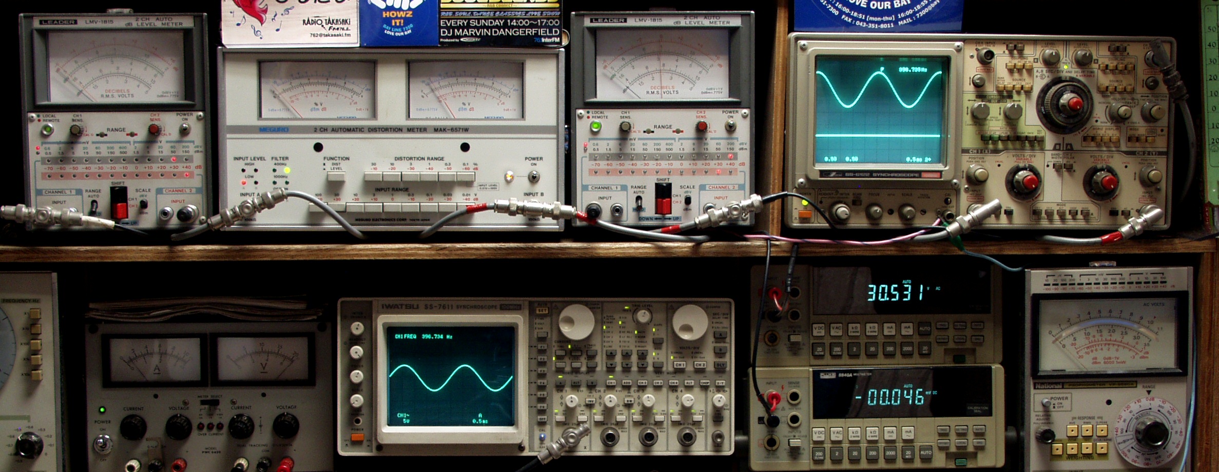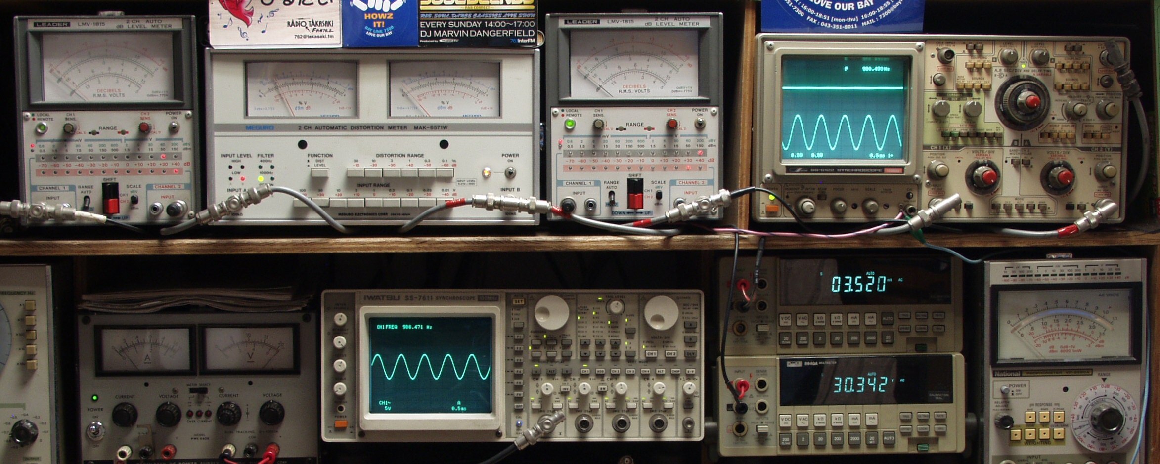 上段中左 歪み率計=SP出力の歪み率測定 左メータ=L出力、右メータ=R出力