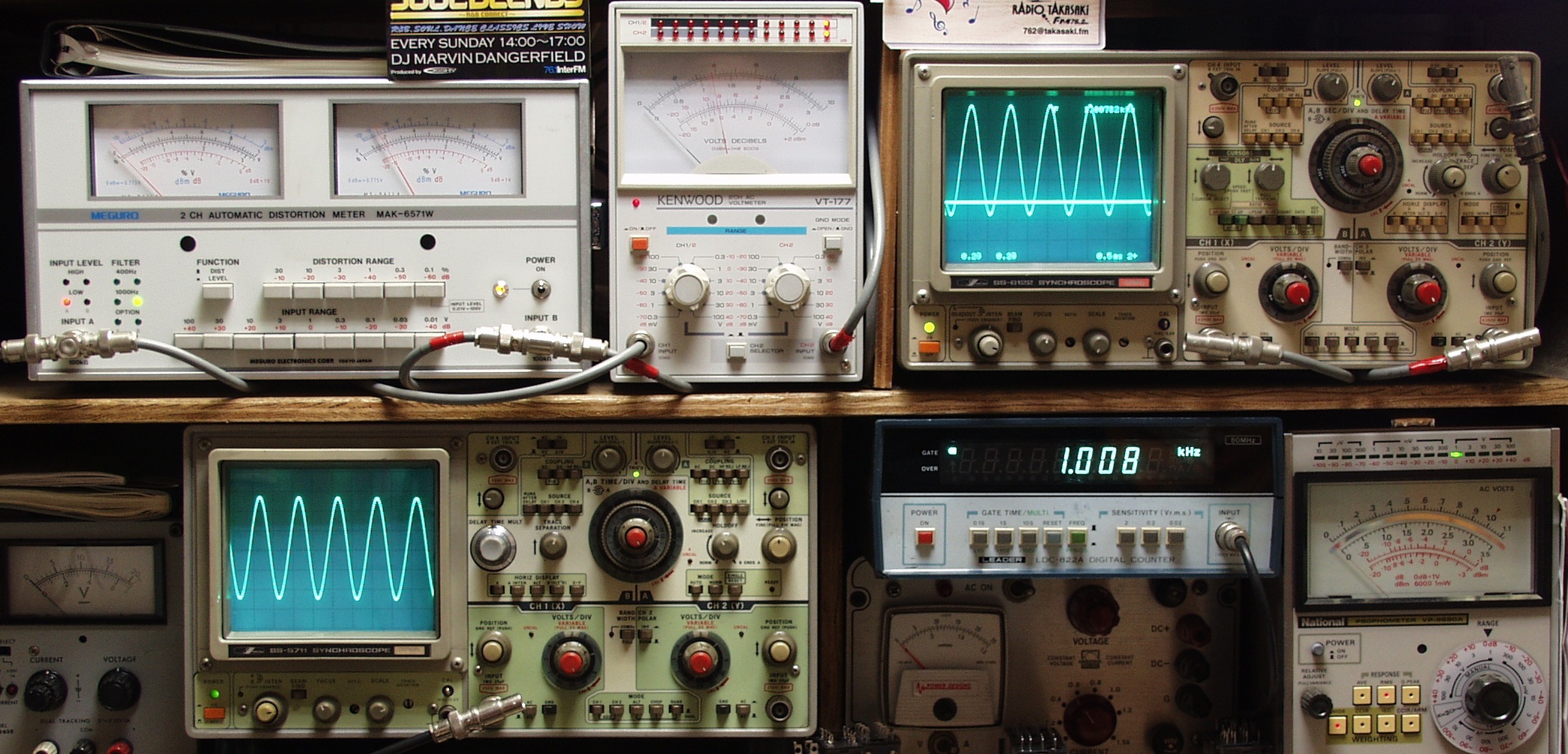 上左=SP出力の歪み率測定 左メータ=L出力、右メータ=R出力