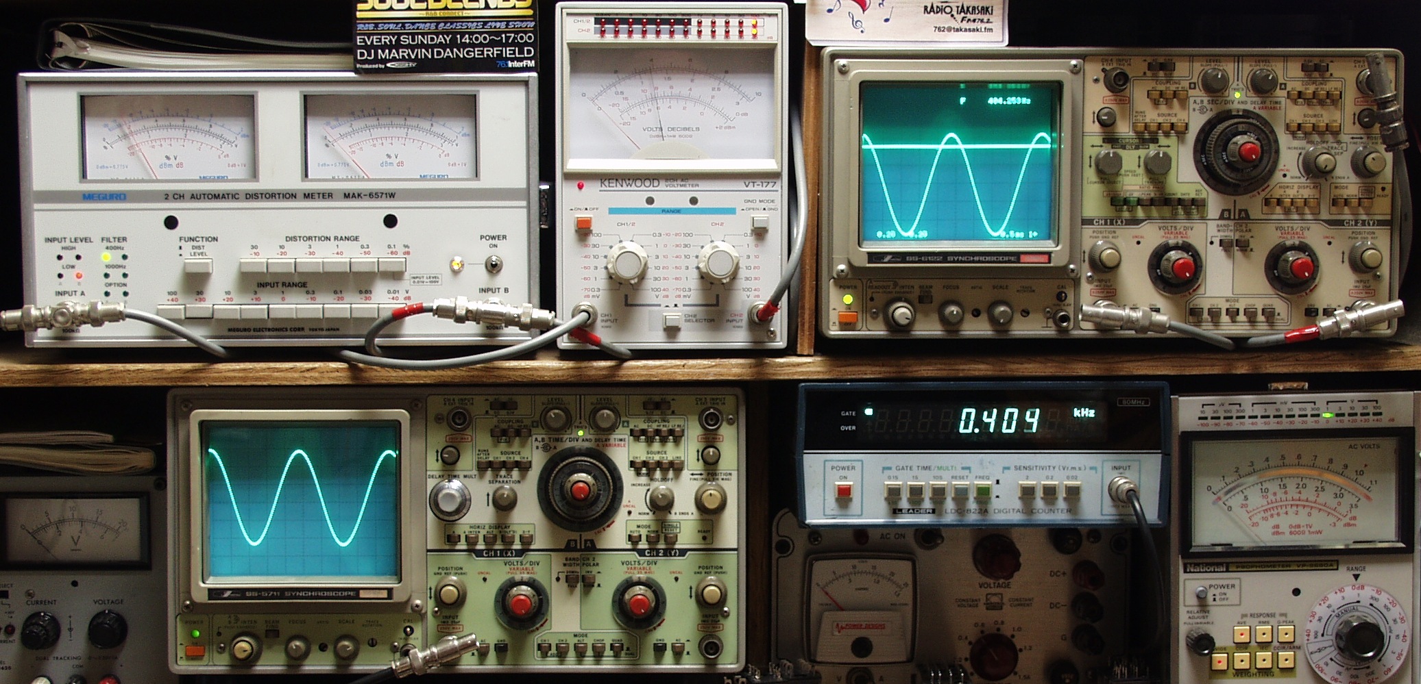下左オーディオ発振器より400HZ・1KHZの信号を出す(歪み率=約0.003%)