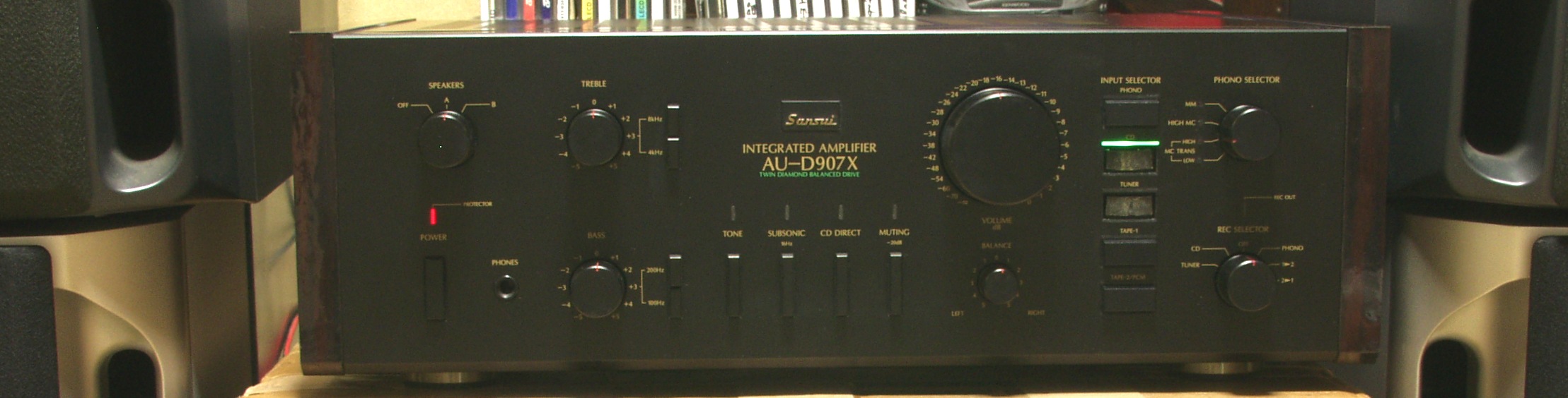 このときに購入し、現在も持っているものの一つにSANSUIのアンプAU-D907Xがあり ます。社会人となり、結婚してから音楽から少し距離がありましたが、また聞きたく なりました。 907Xを捨てて、新しい機器を購入することも考えたのですが、捨てるには心許なく、 修理したいと考えています。