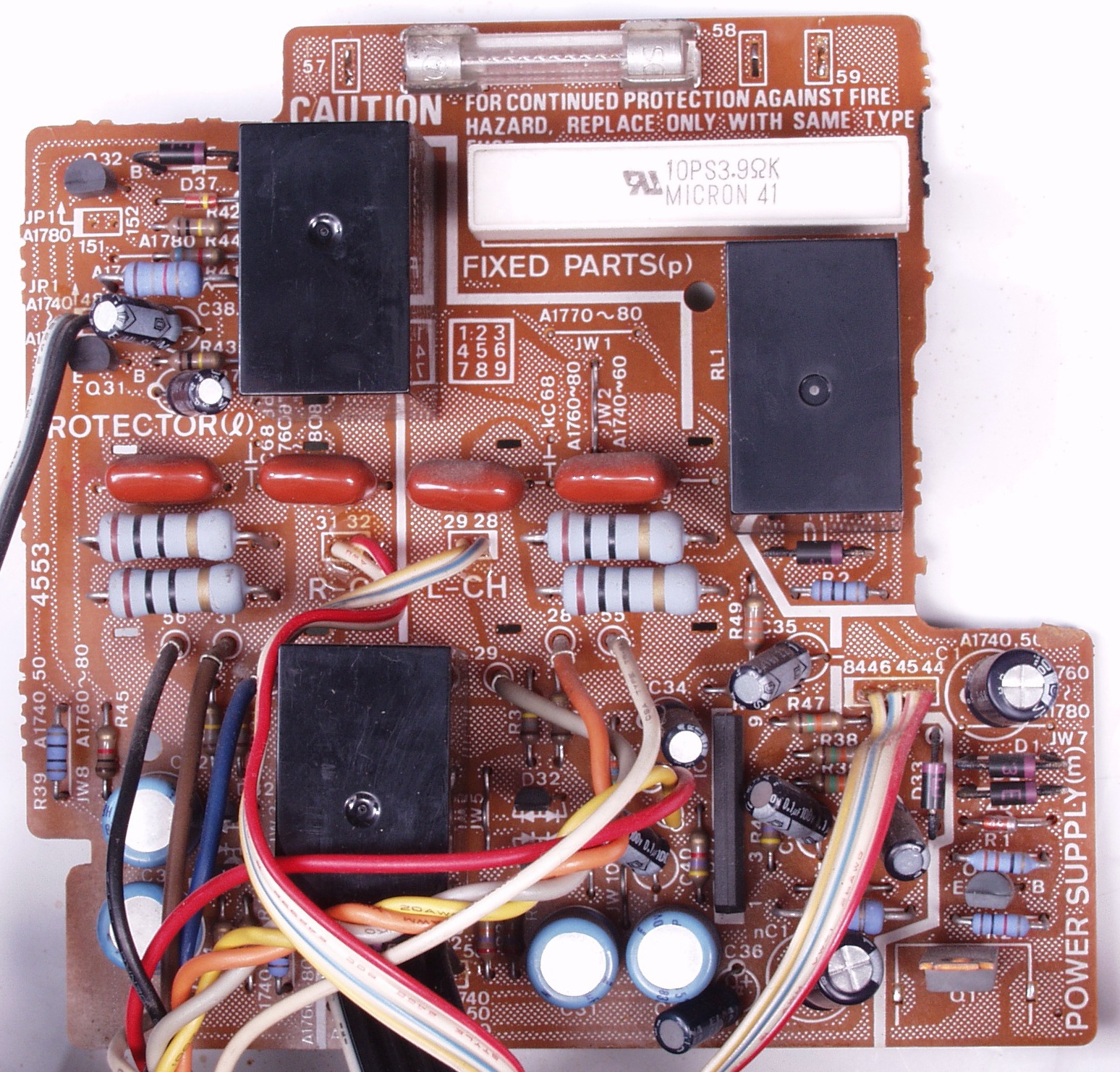 C32. 修理後 RLプロテクト基板電解コンデンサー4個交換、高性能のBPを使用したので2個→1個