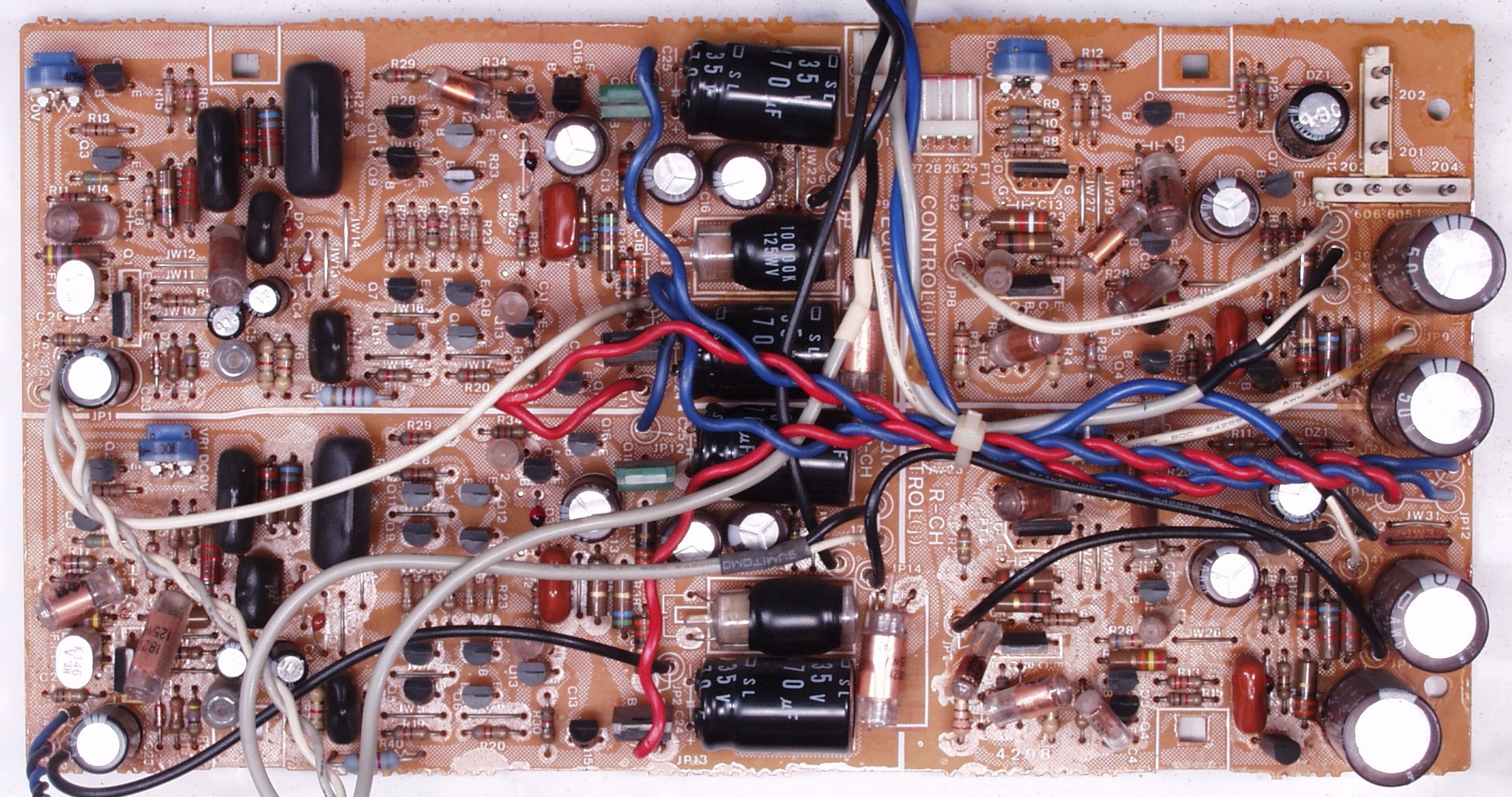 CD2. 修理後 EQ基板 初段FET(電界効果トランジスター)2個、半固定VR4個、電解コンデンサー20個交換