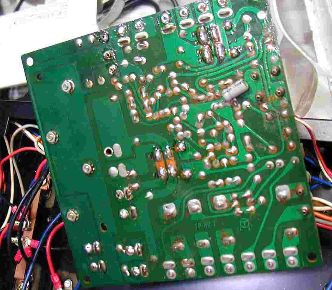 | 9.修理終えた低電圧基板、右手前の抵抗が焼け切れている。 |