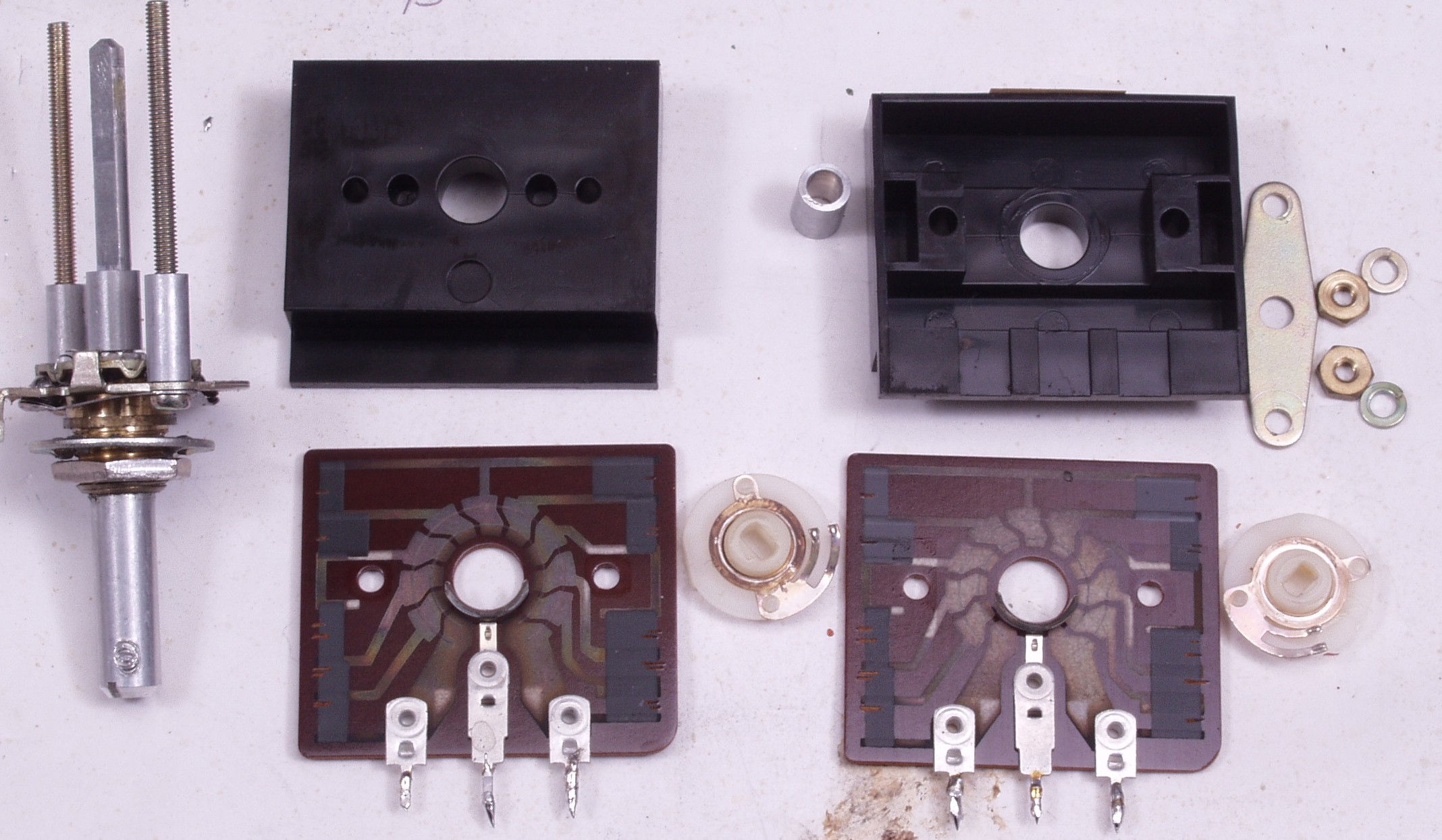 | C−BA−1. 修理中 メインVR基板 並列に抵抗が入った高級タイプ、しかし軸がカシメ構造なので、これまで |
