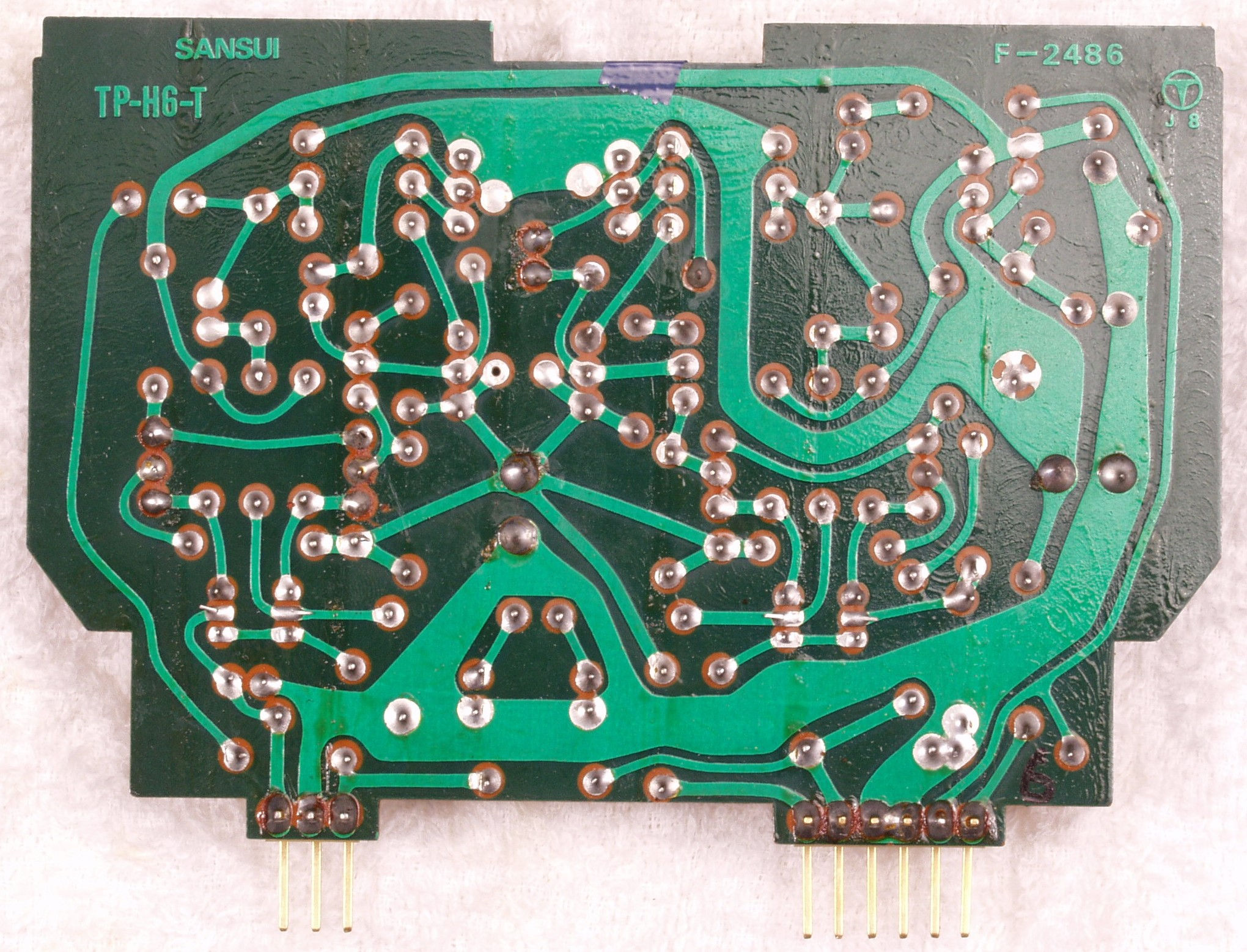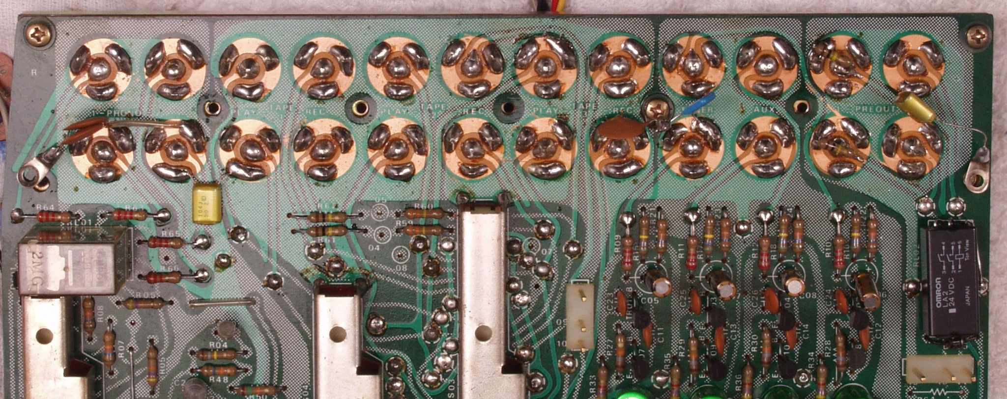 | C−2C. 修理前 メイン基板裏 色が変化している所は、接点復活材を吹いた後 |