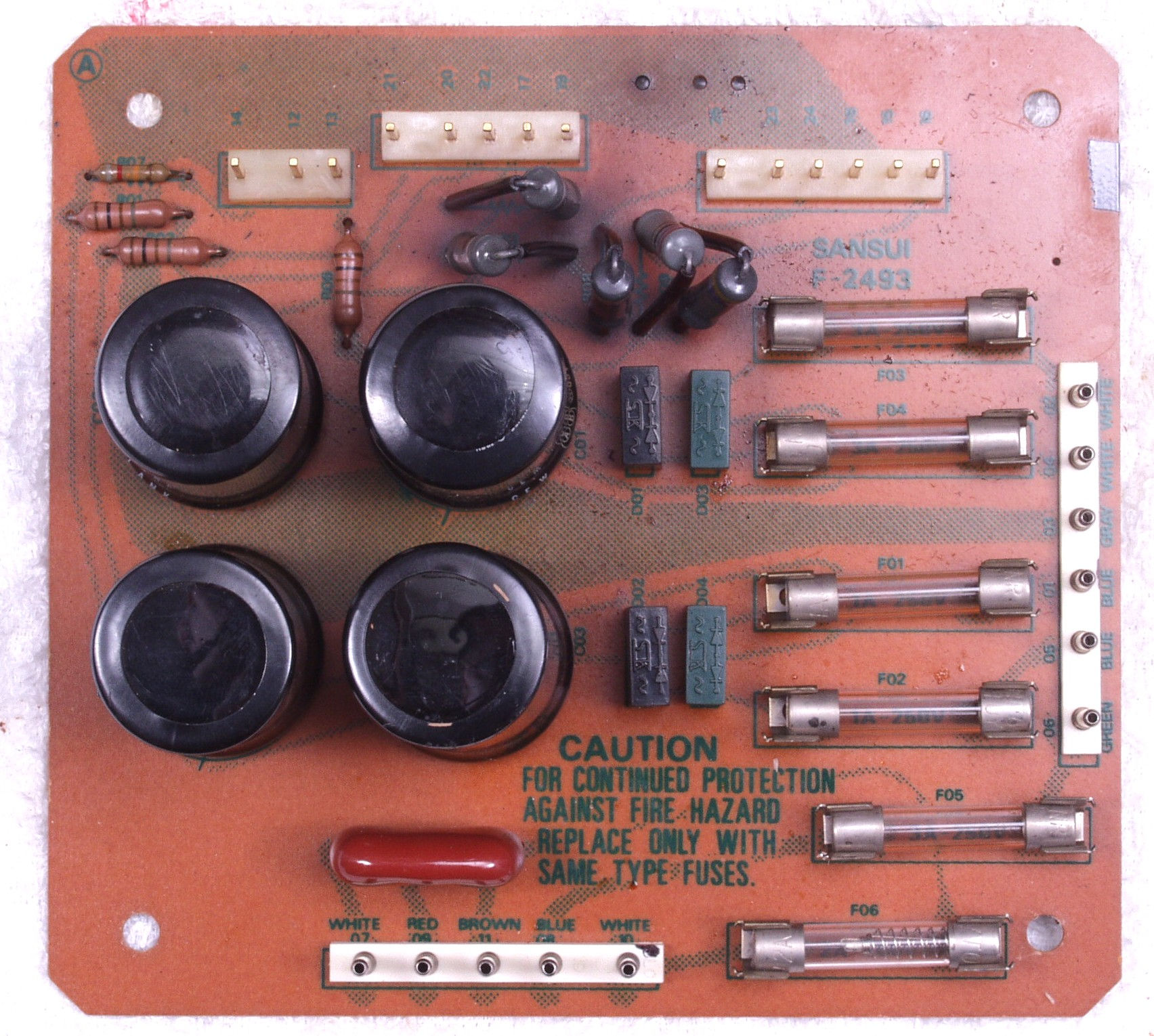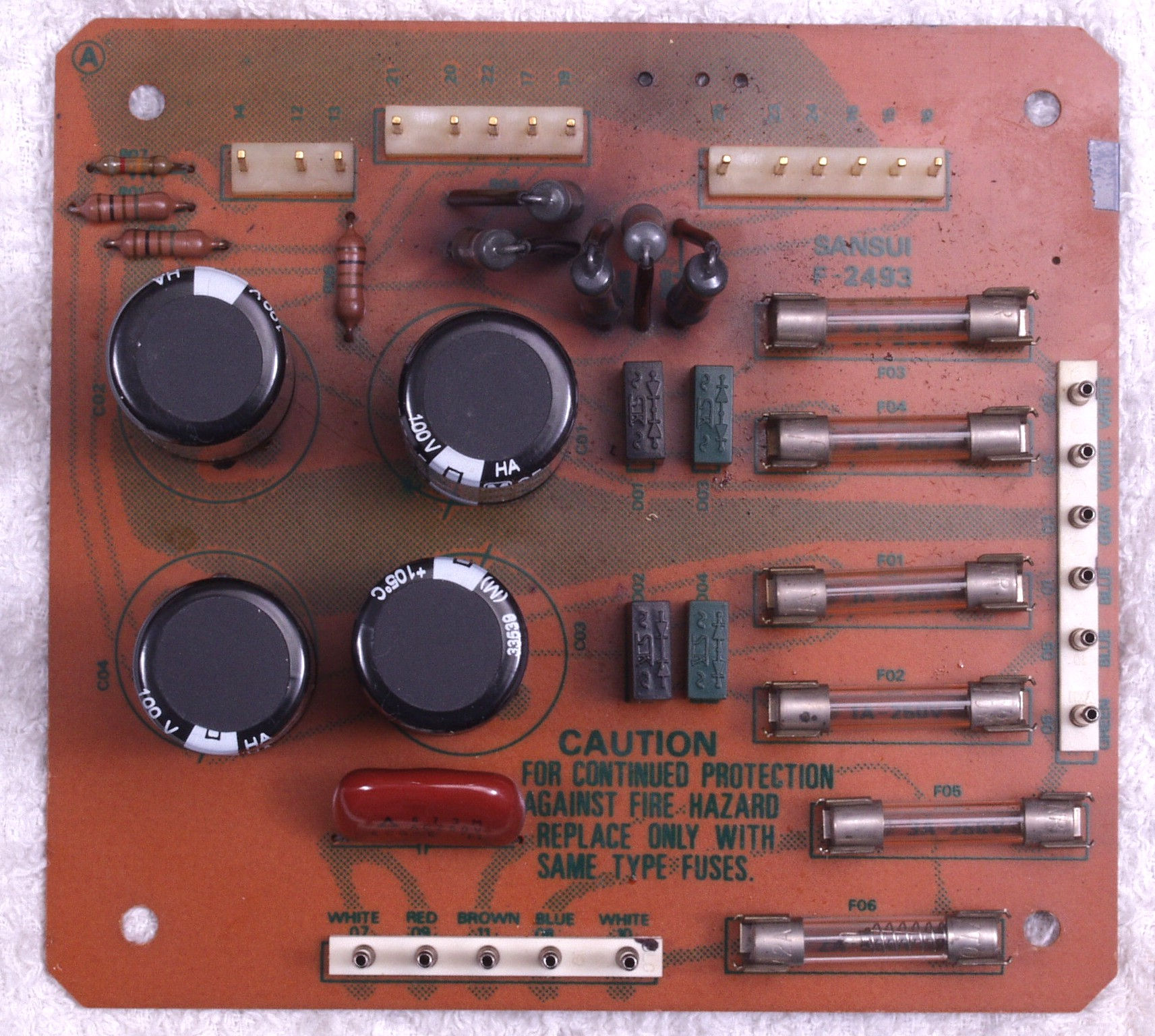 | C−CB. 修理後 フイルター基板 フイルムコンデンサー38個、TR(トランジスター)8個、電解コンデンサー10個交換 |