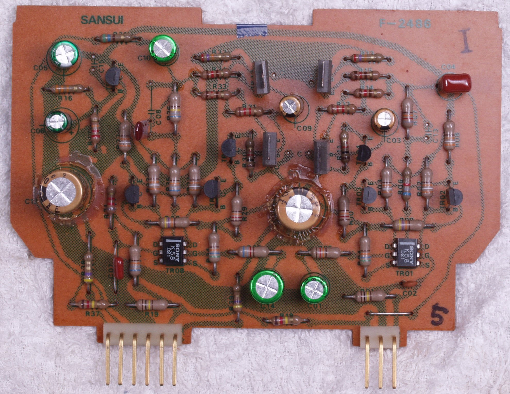 | C−BB. 修理後 メインVR基板 TR(トランジスター)8個、電解コンデンサー6個交換 |
