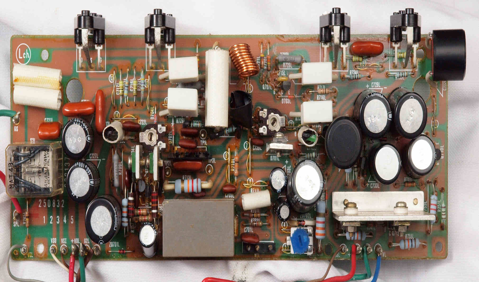 | C43. 修理後 RLモジュール裏。 TR(トランジスター)交換後軽くラッカーを吹きました。 |