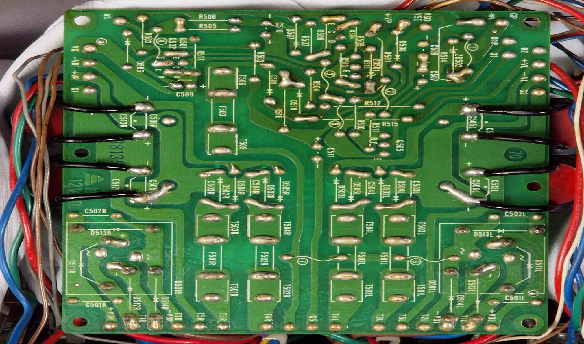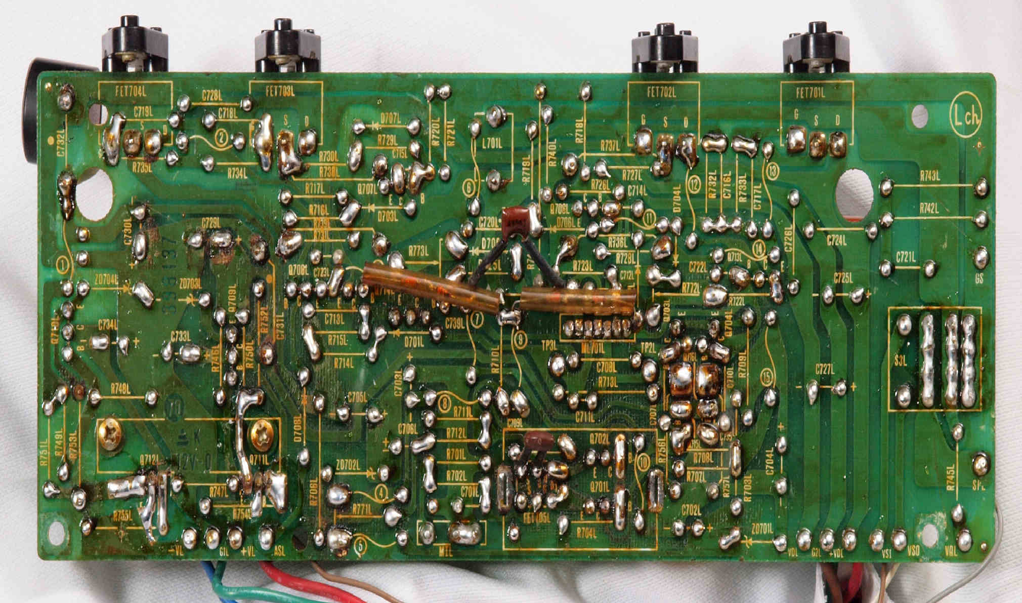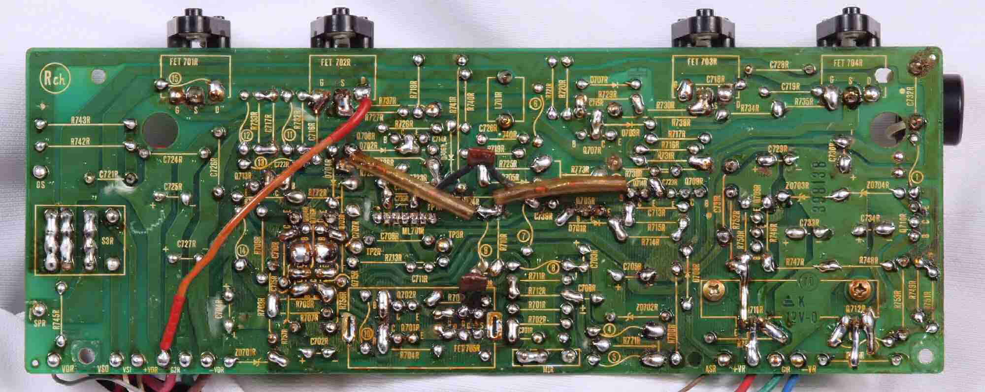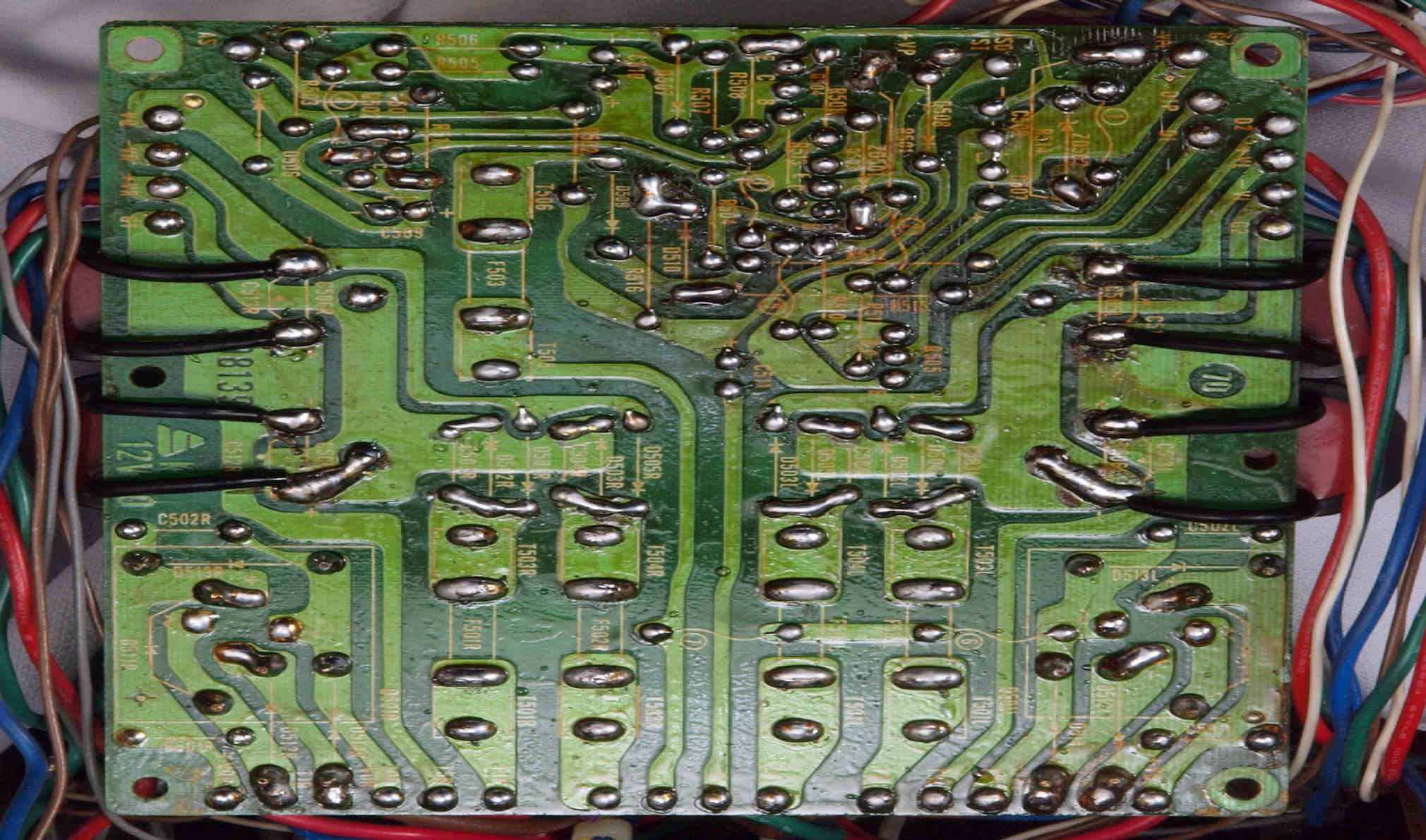 | C15. 修理(半田補正)後 R側ドライブ基板裏 半田を全部やり直す。 普通はこれで完成。 |