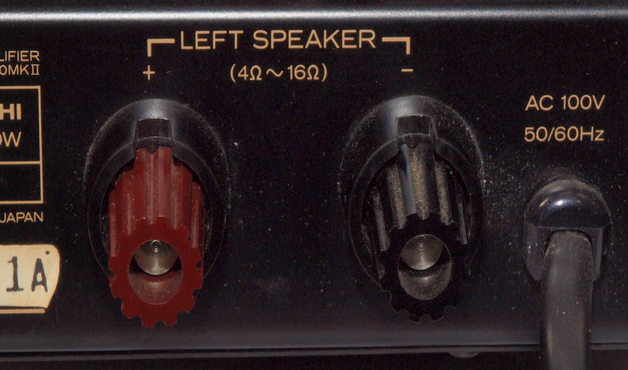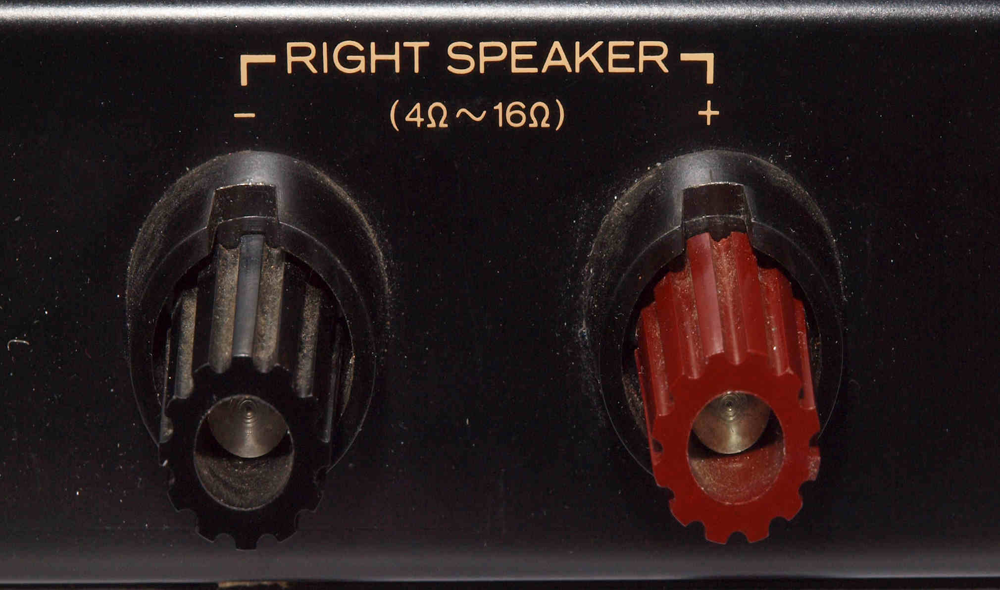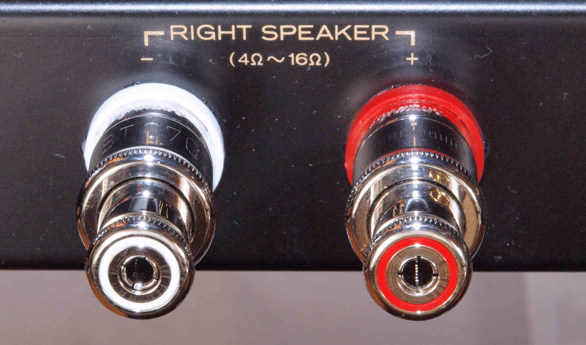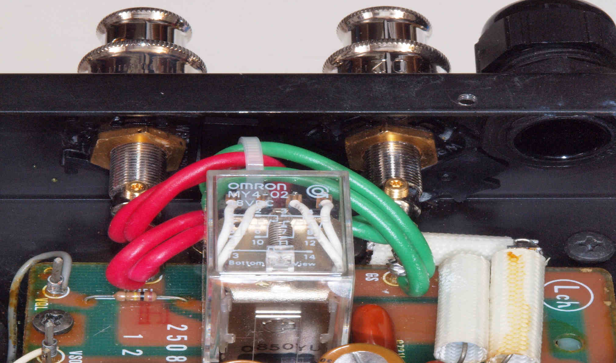 | 注意 このAMPはアースラインが浮いています。 AMPのシャーシにSPの線(アース側)やプリAMPのアースもも接続してはいけません。 RL−SPのアース線も接続(共通)してもいけません、+−の撚りのあるのも使用出来ません。 又、DC(directconnection)入力が可能ですが、絶対に使用しないこと=ここ参照 |