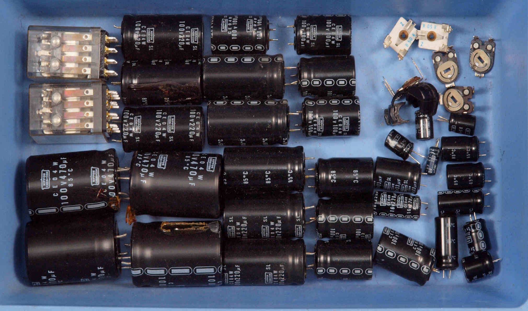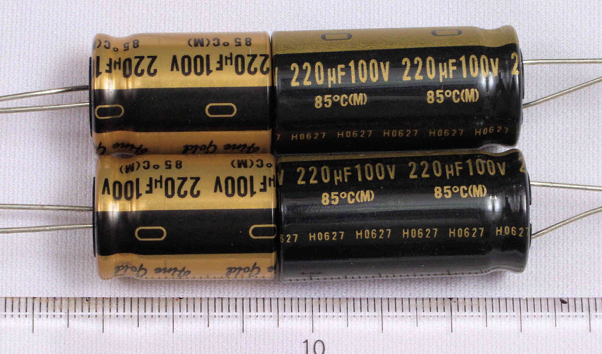 | A42. 点検中 電解コンデンサー外観比較、220μ/100V |