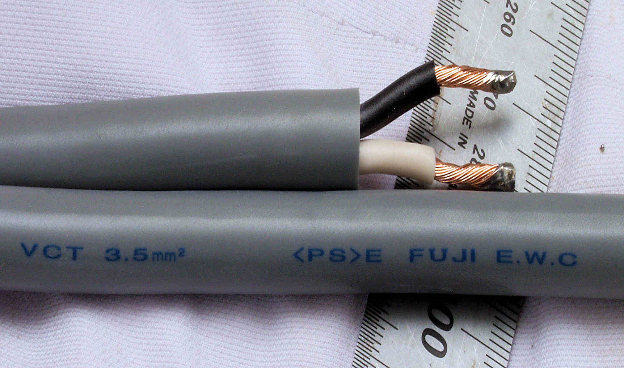 | A52. 点検中 交換する電源コード(3.5スケア)、 PSE合格品なので被服が分厚い! |
