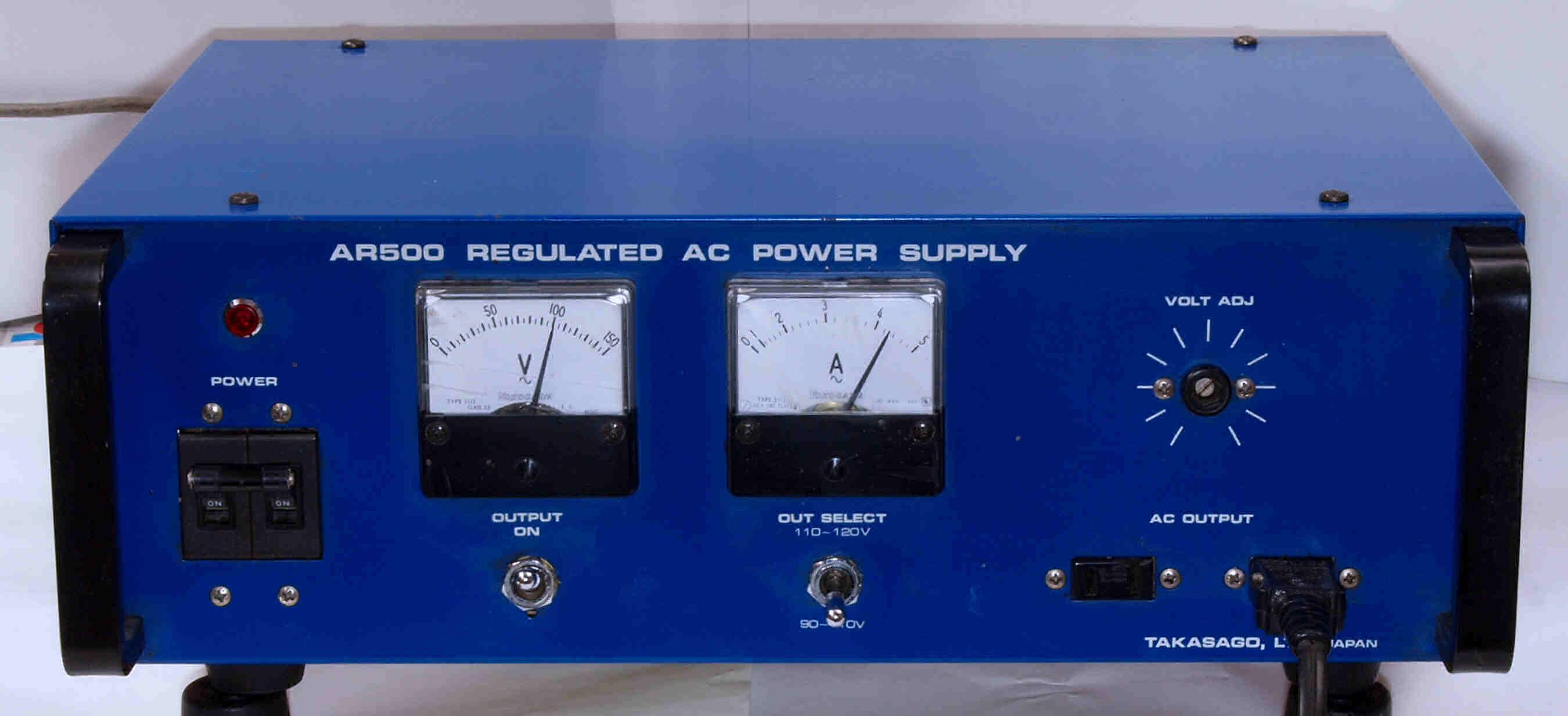 A3. 修理後、440VAの負荷を掛け、前から見る。 出力SWを入/切しても電圧計はビクともしない。
