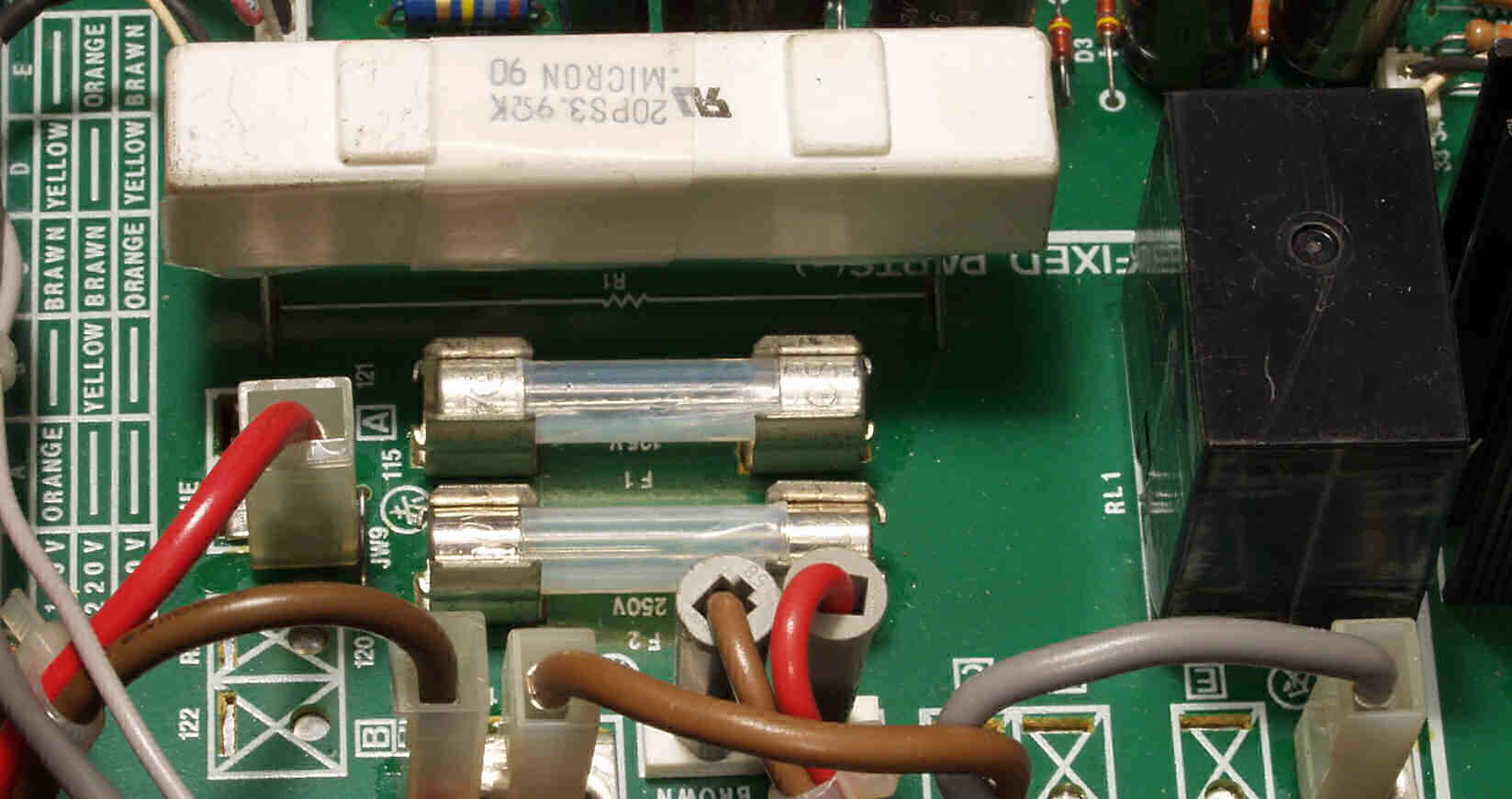 A5A. 電源部 フューズ、抵抗、リレーにユーザーがテフロンテープが貼って有る