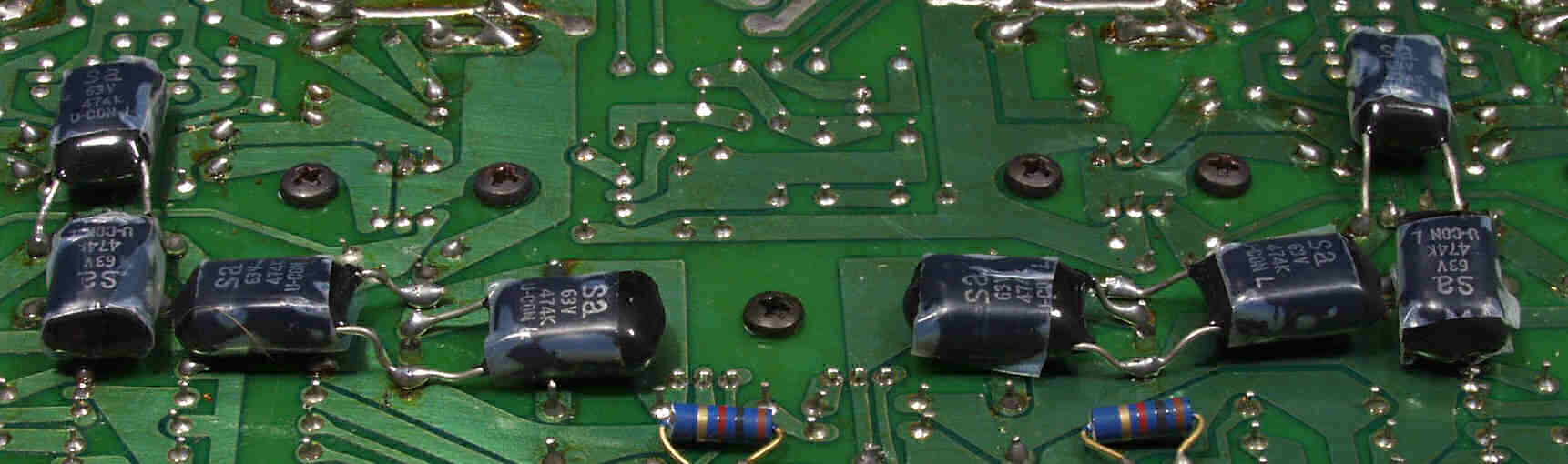 A6C. AMP基板 電解コンデンサー、パスコンにユーザーがテフロンテープが貼って有る