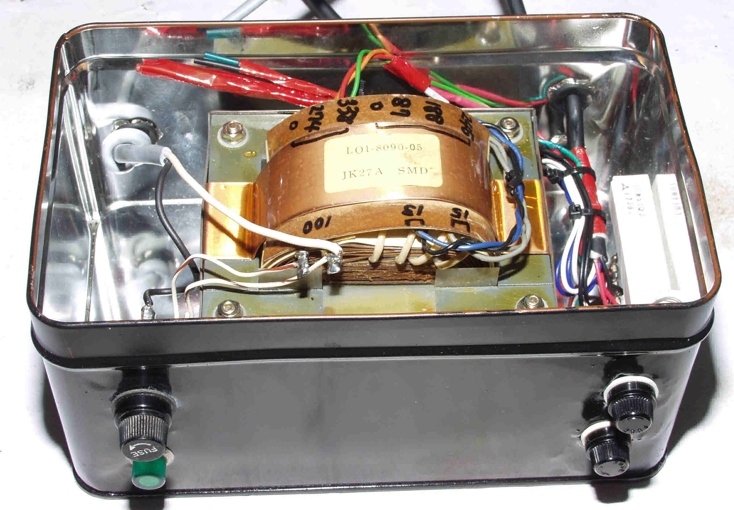 トランスはジャンク品を改造して流用したので、電流容量は20倍以上なので、安全の為、フューズを多用する。