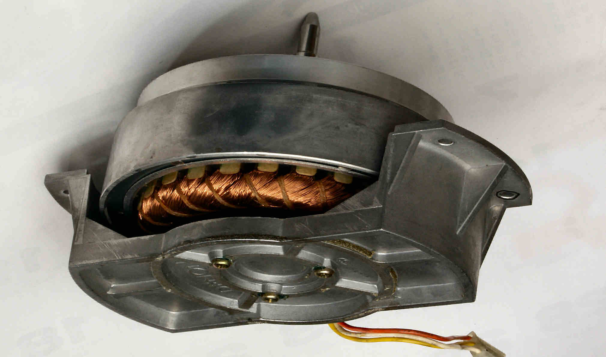 | A61. 点検中 心臓部のモーター インダクションモーターなので、固定子、回転子のギャップが狭いので、良く清掃する 本当は回転子を抜きベアリングのグリスUPをしたい所ですが、アウターロータの為、分解出来ず。 |
