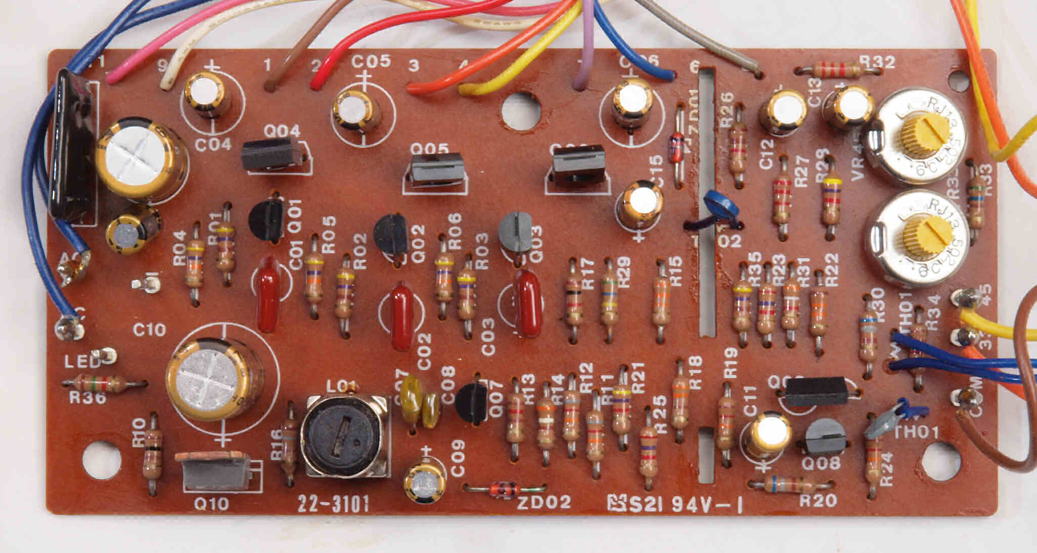 C12 .修理後 モーター部コントロール基板。 半固定VR2個、電解コンデンサー14個、交換。