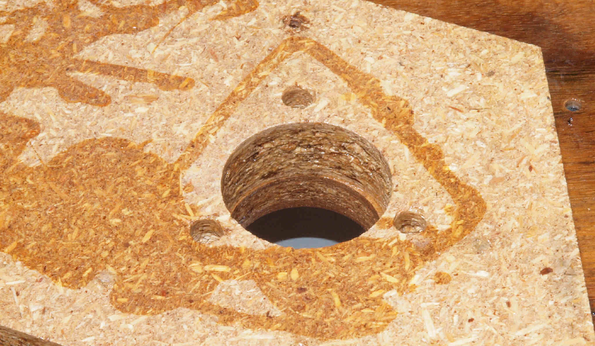 | W2A. 修理後 アーム取付穴表。 乾燥後さらにウレタン塗料を塗る。 | ||||||||||||||||||||||||||||||